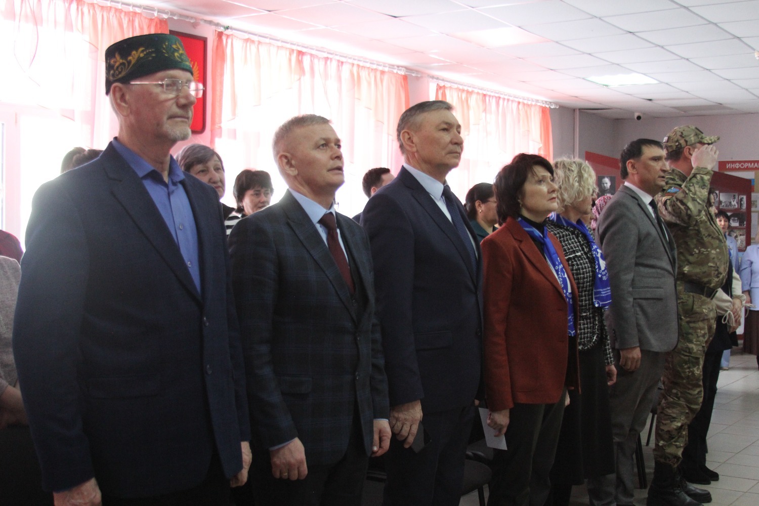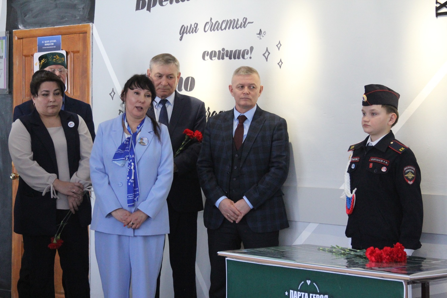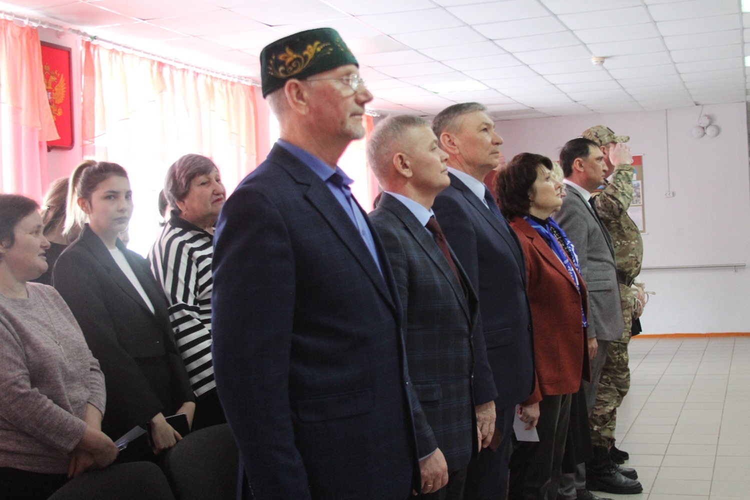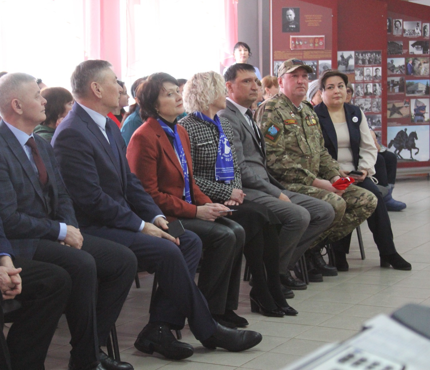 Тантаналы чарада район хакимияте башлыгының беренче урынбасары Гемир Нуртдинов, Ватанны саклаучыларның һәлак булган гаиләләре гомумрусия иҗтимагый оешмасының Башкортостан Республикасы буенча төбәк бүлеге рәисе Алина Серафимова, аның урынбасары Елена Архипова, “Сугышчан туганлык” оешмасы җитәкчесе Айдар Ситдыйков, «Ватанны саклаучылар» фонды филиалының социаль координаторы Лариса Шәвәлиева, район мәгариф бүлеге начальнигы Илдус Мостафин, гимназия директоры Алик Усаев, район мәктәпләренең директор урынбасарлары, укытучылар, укучылар, яугирләрнең әти-әниләре, якыннары катнашты.