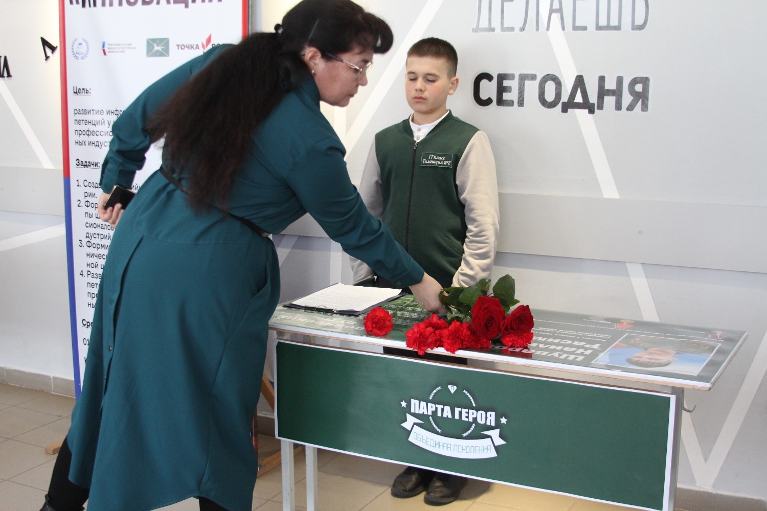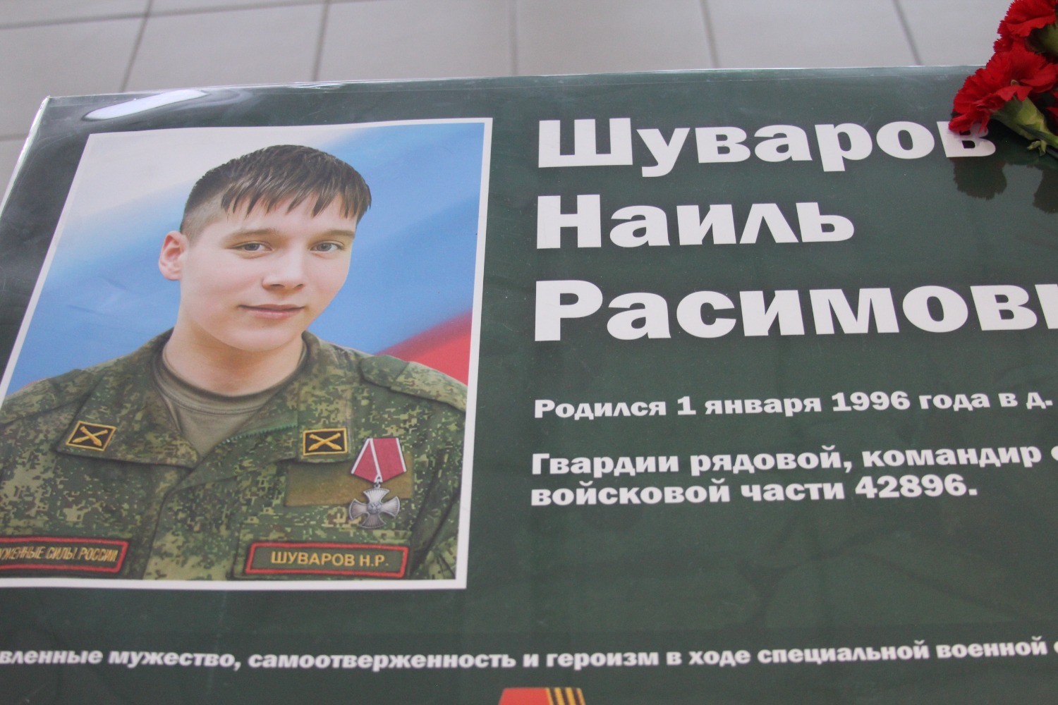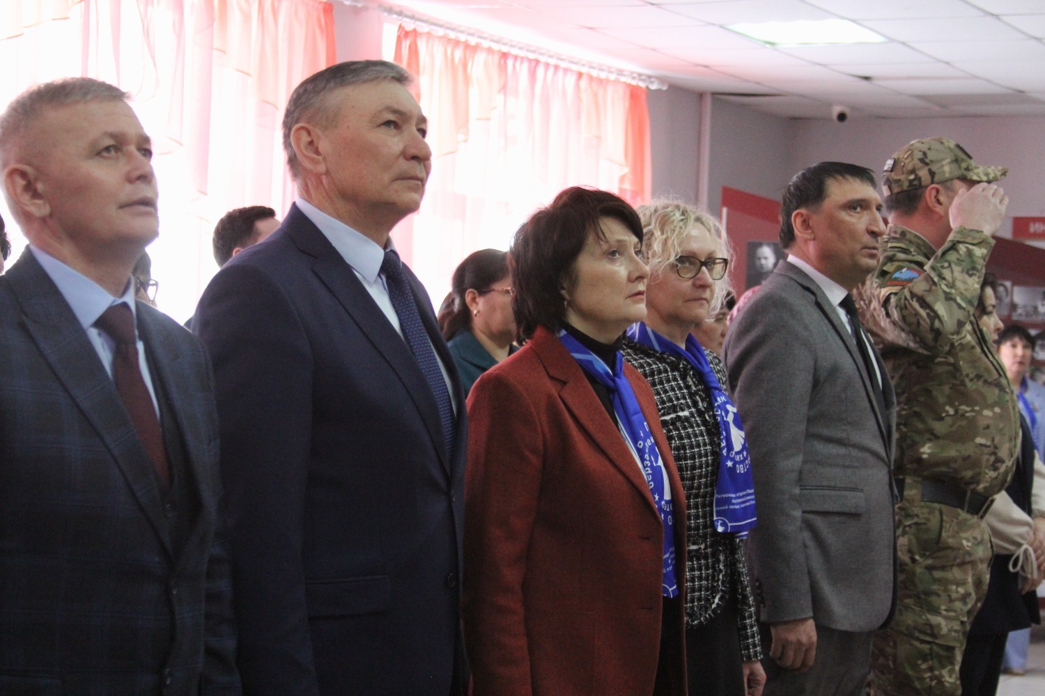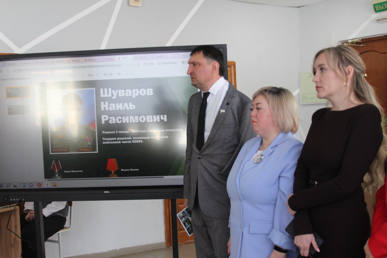 Тантаналы чарада район хакимияте башлыгының беренче урынбасары Гемир Нуртдинов, Ватанны саклаучыларның һәлак булган гаиләләре гомумрусия иҗтимагый оешмасының Башкортостан Республикасы буенча төбәк бүлеге рәисе Алина Серафимова, аның урынбасары Елена Архипова, “Сугышчан туганлык” оешмасы җитәкчесе Айдар Ситдыйков, «Ватанны саклаучылар» фонды филиалының социаль координаторы Лариса Шәвәлиева, район мәгариф бүлеге начальнигы Илдус Мостафин, гимназия директоры Алик Усаев, район мәктәпләренең директор урынбасарлары, укытучылар, укучылар, яугирләрнең әти-әниләре, якыннары катнашты.