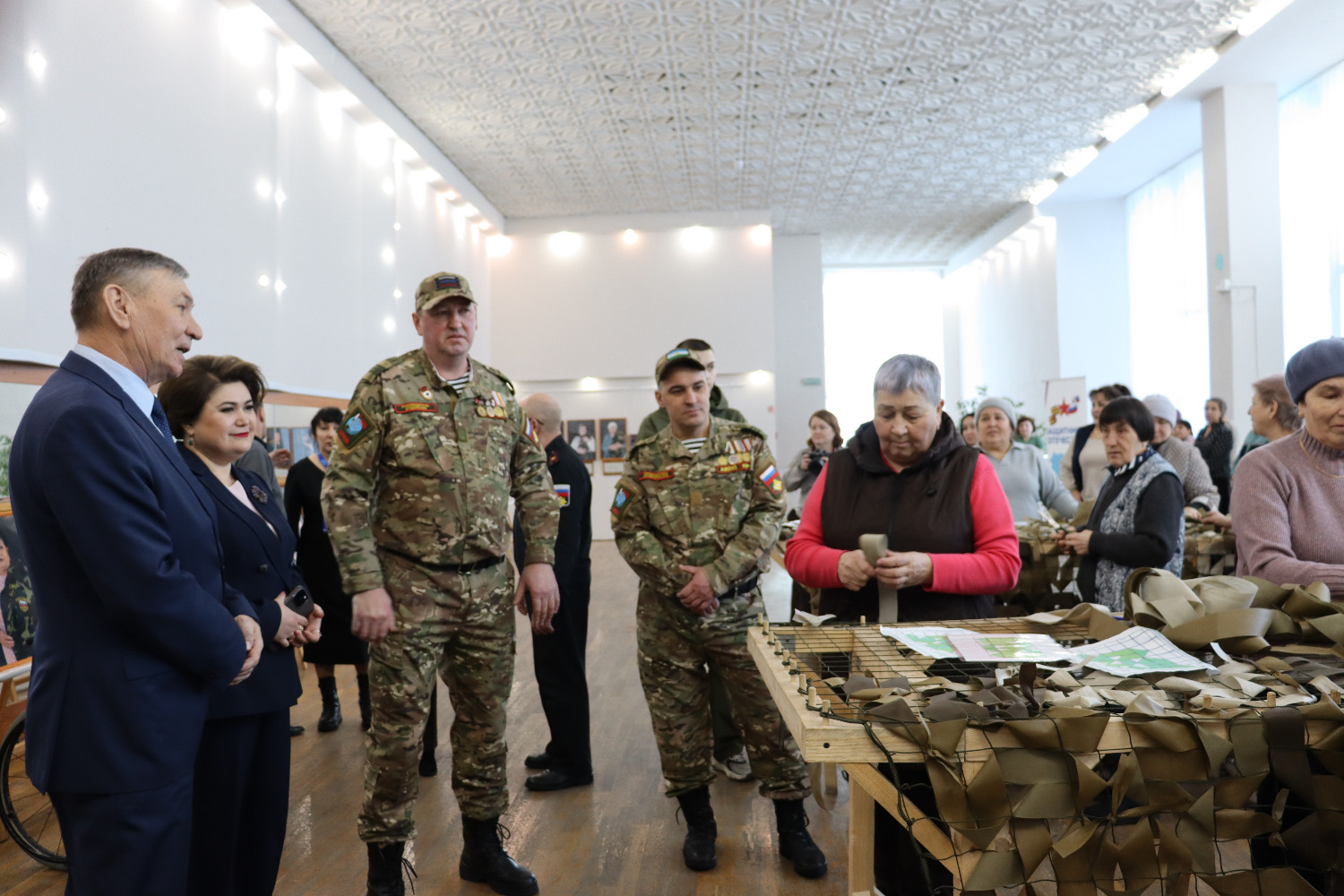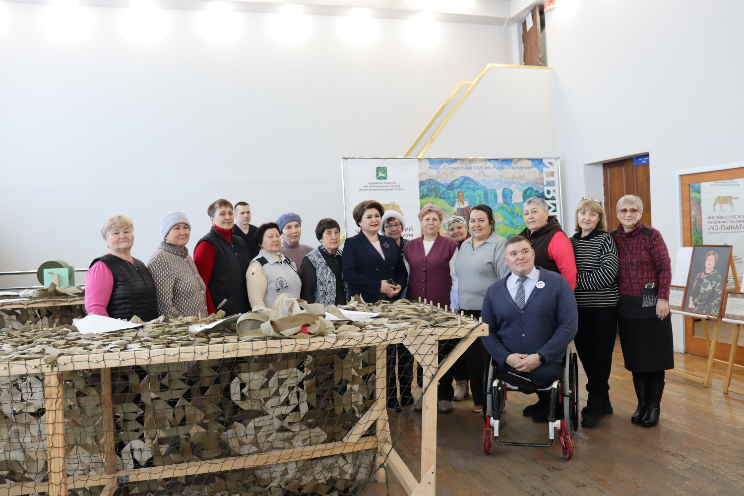 Артабан очрашу район мәдәният йортында дәвам итте. “Герой әнисе. Герой хатыны” күргәзмәсе белән танышкач, мәртәбәле кунаклар маскировкалау челтәрләре үрүчеләр белән очрашты.