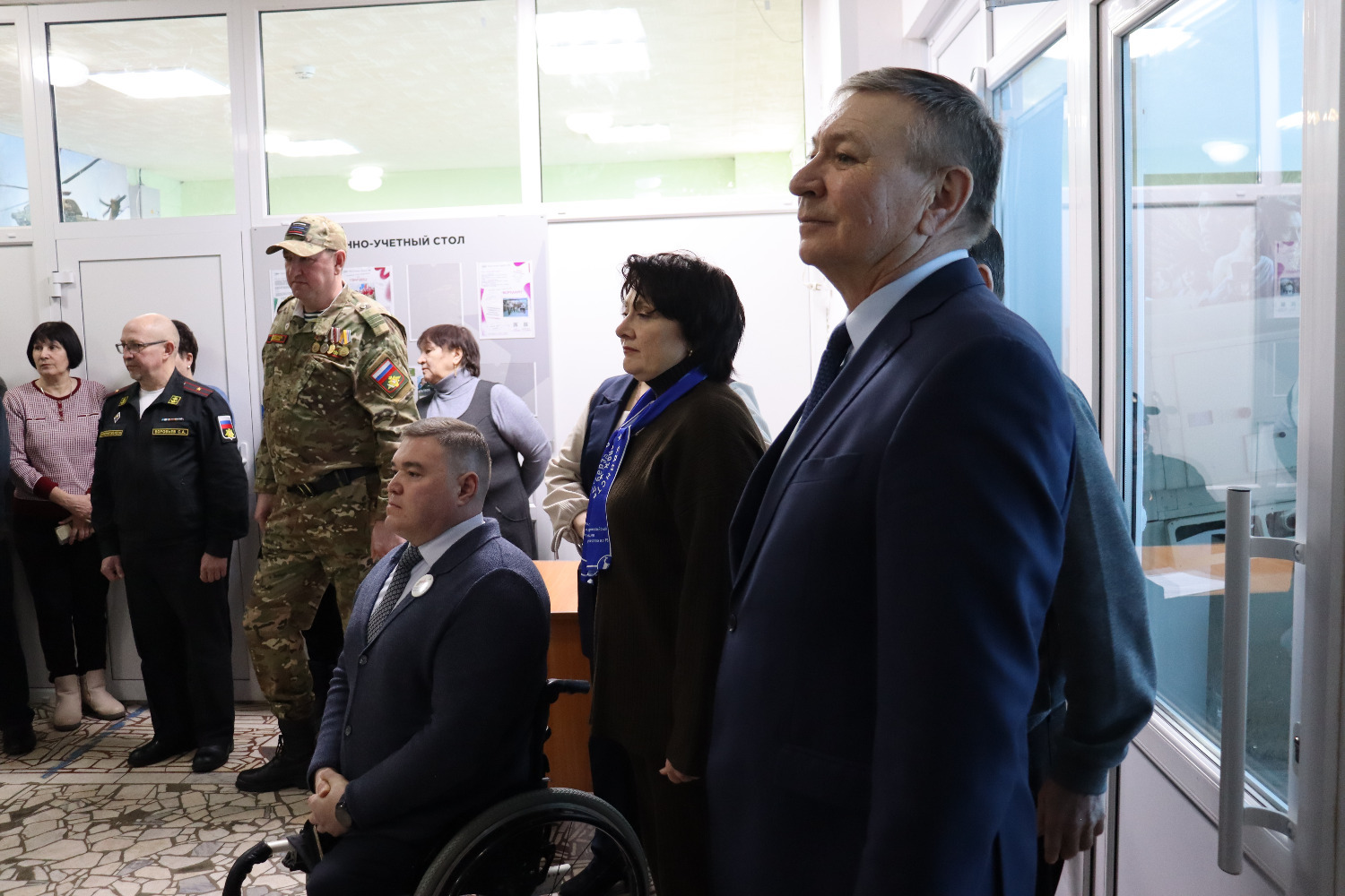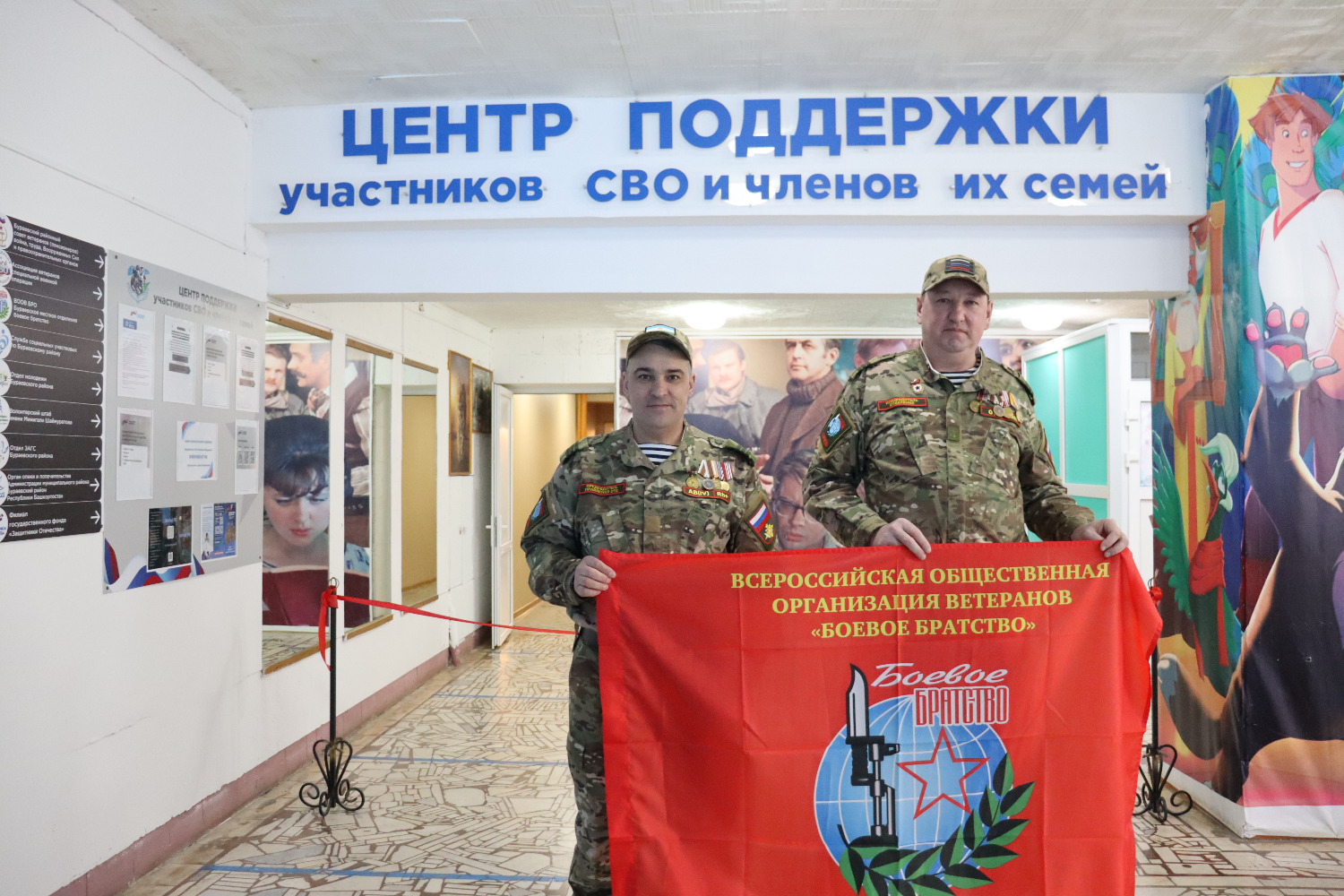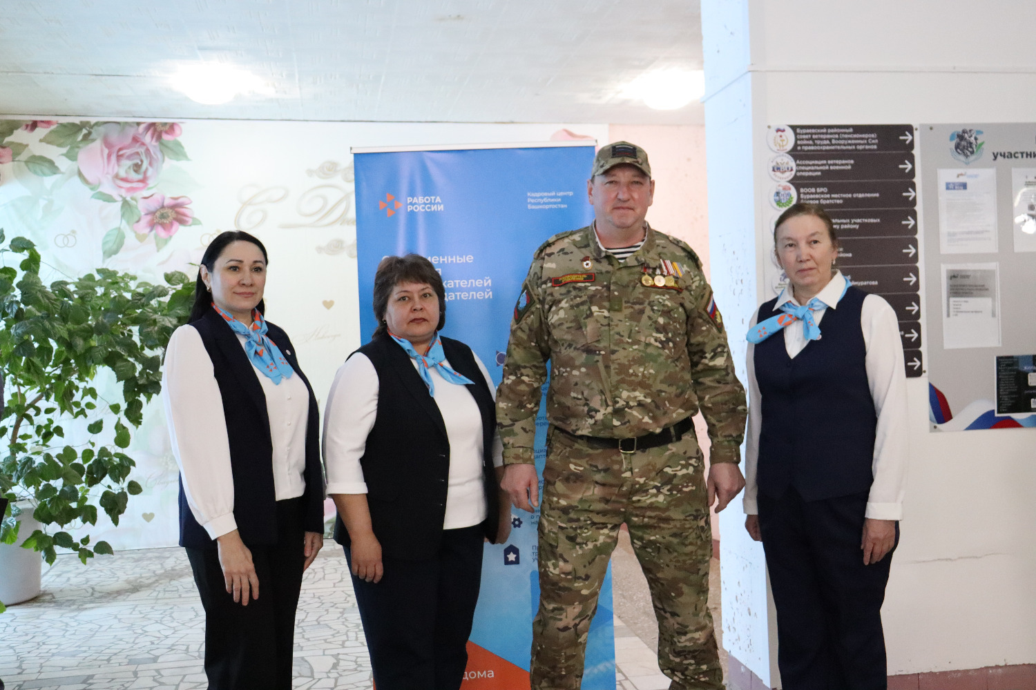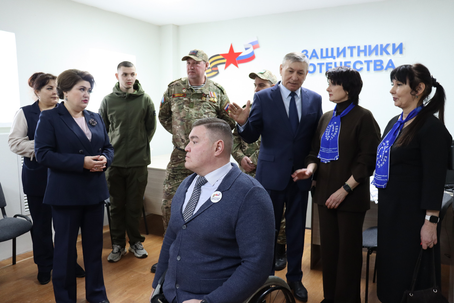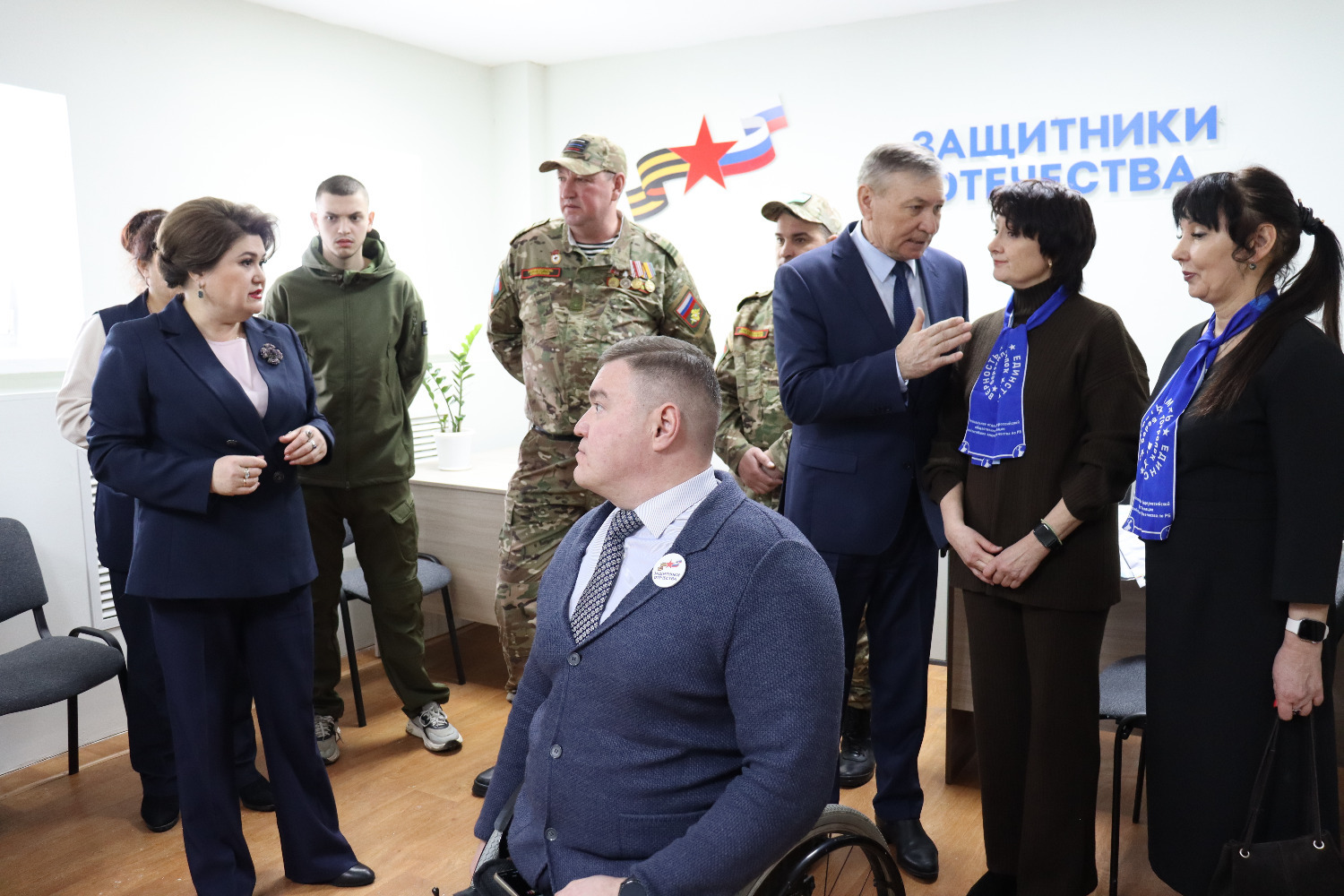 Символик кызыл тасманы кисү тантанасыннан соң кунаклар махсус хәрби операциядә катнашучыларга һәм аларның гаилә әгъзаларына ярдәм итү үзәгенең, “Сугышчан туганлык” оешмасының, район ветераннары советының, Миңнегали Шәйморатов исемендәге волонтерлык штабының, хәрби-исәп өстәленең эшчәнлеге белән танышты.
