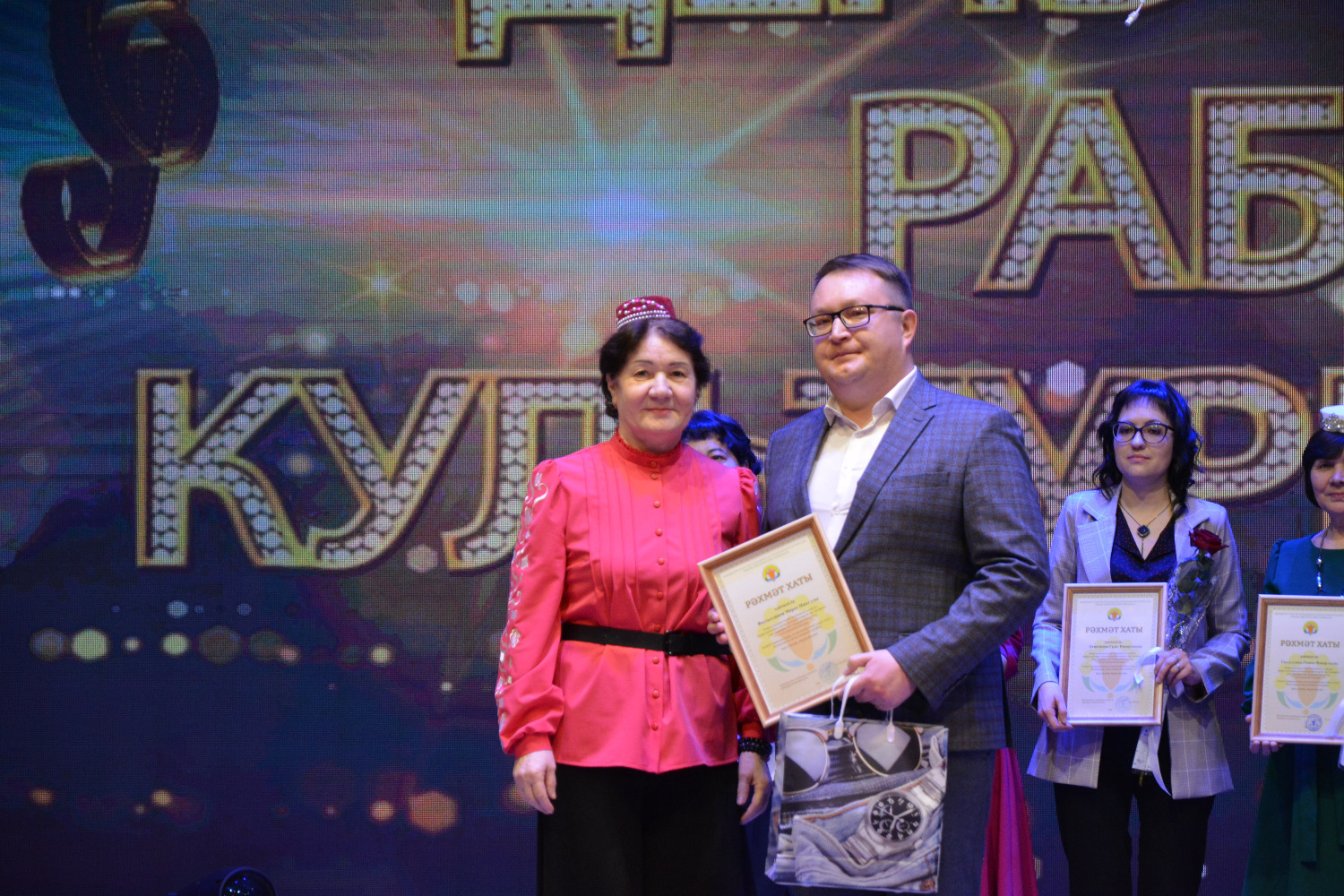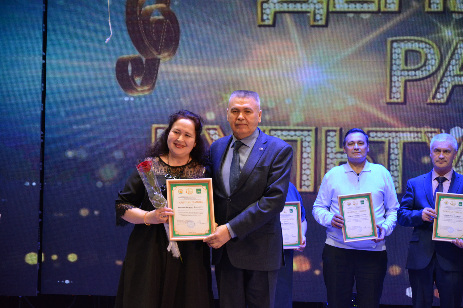 Также директор Бураевской районной межпоселенческой централизованной библиотечной системы Равил Ахметов, председатель районного профсоюза работников культуры Гульшат Гумерова, председатель местного отделения Конгресса татар Бураевского района Ирина Исмагилова поздравили всех присутствующих с праздником и вручили Благодарственные письма и Почетные грамоты.