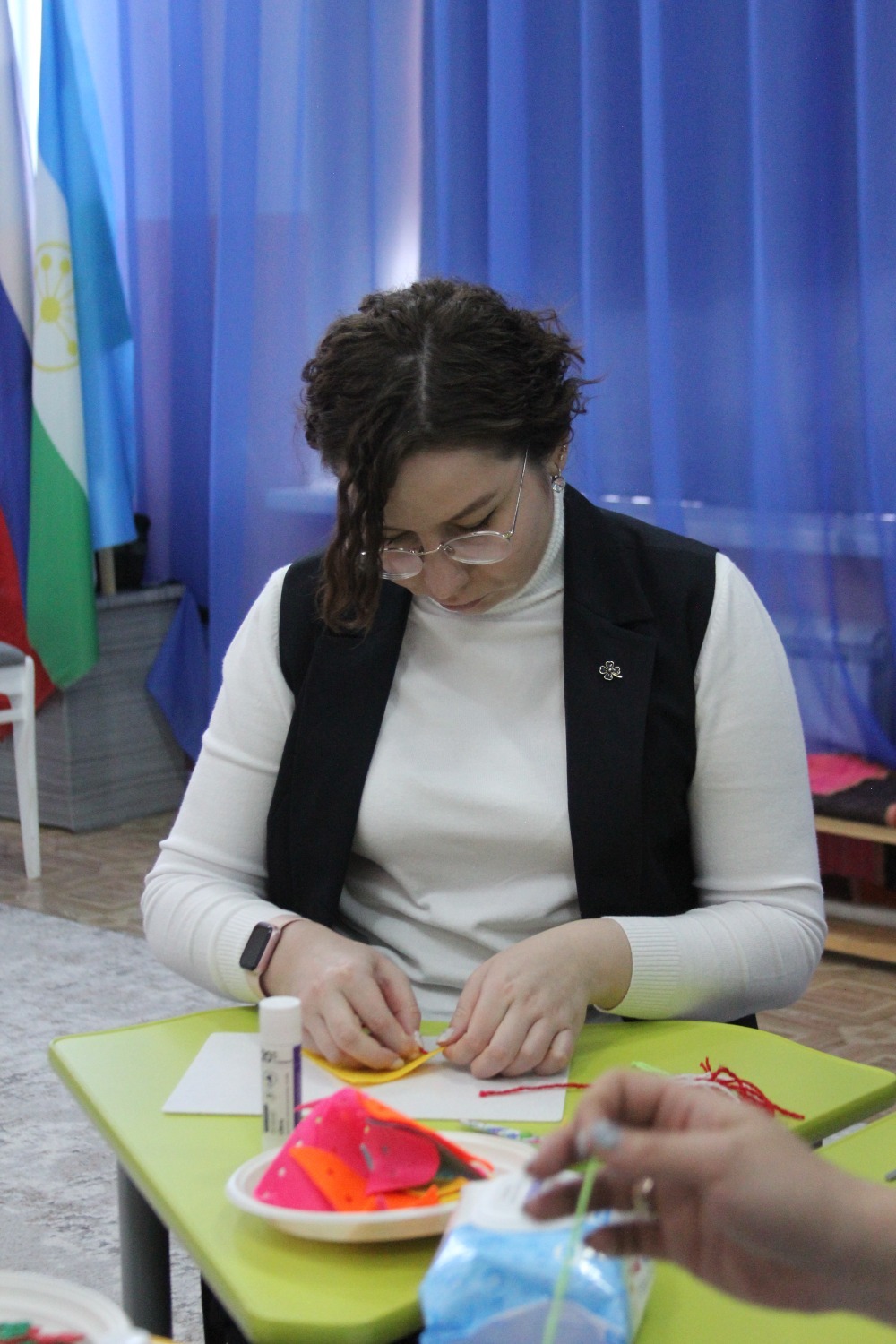 Иң элек «Гүзәл» үсеш һәм тәрбия үзәгенең өлкән тәрбиячесе Лиана Әхмәдуллина мәктәпкәчә яшьтәге балаларга этномәдәни тәрбия бирүнең әһәмиятен аңлатып үтте.