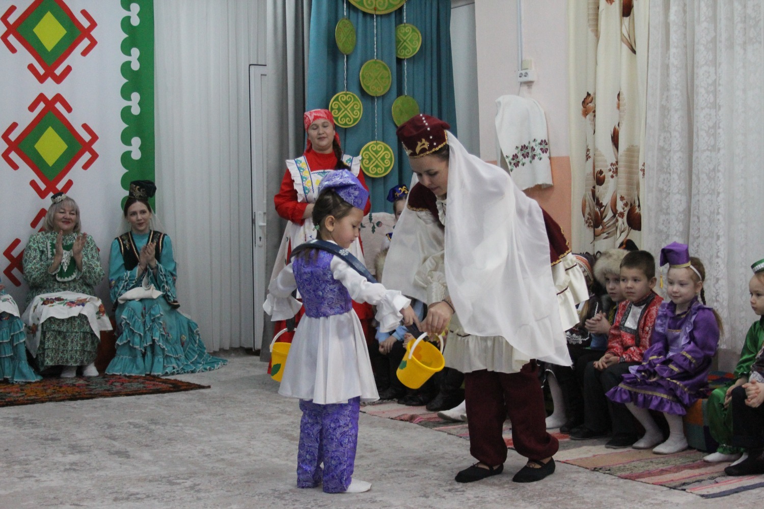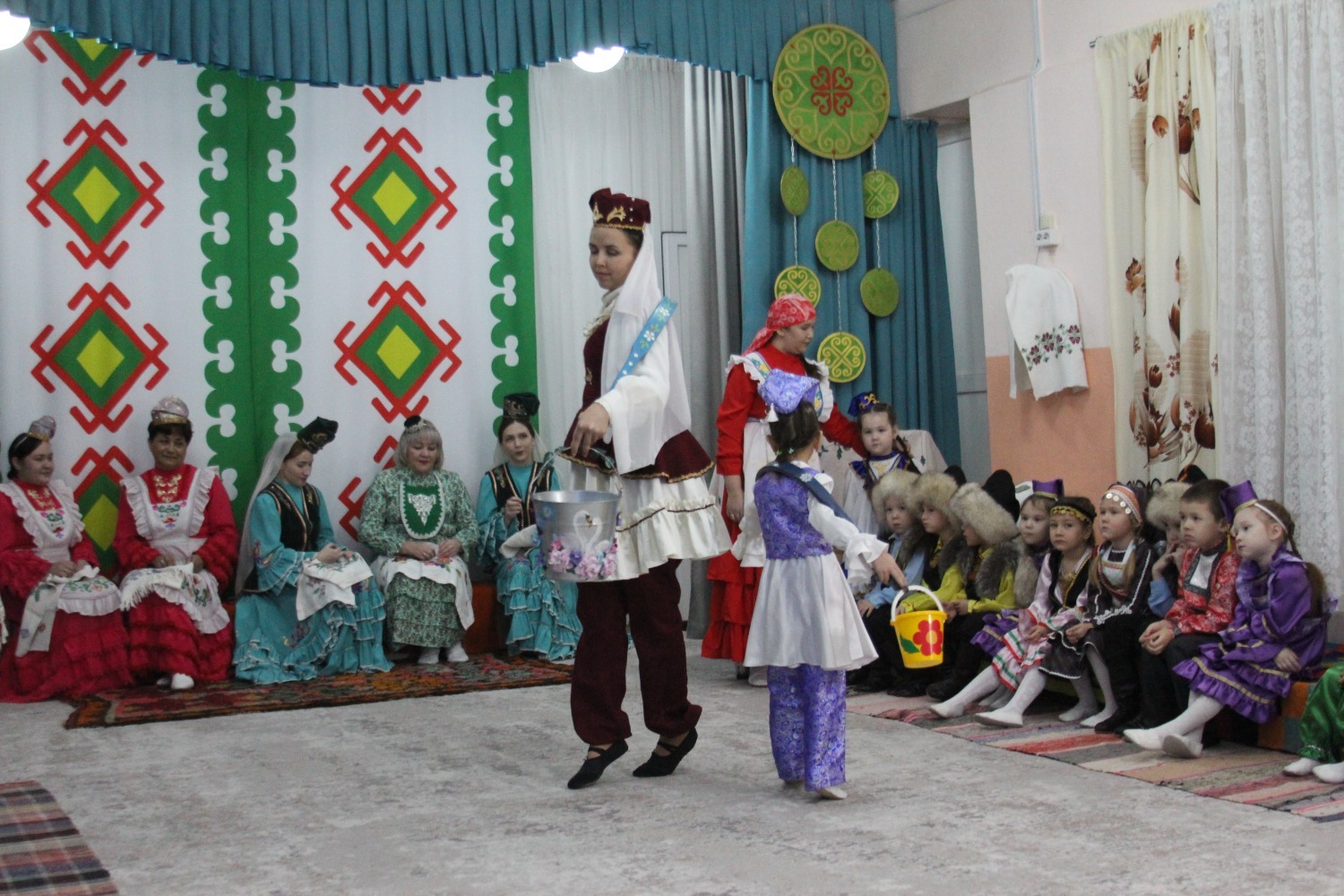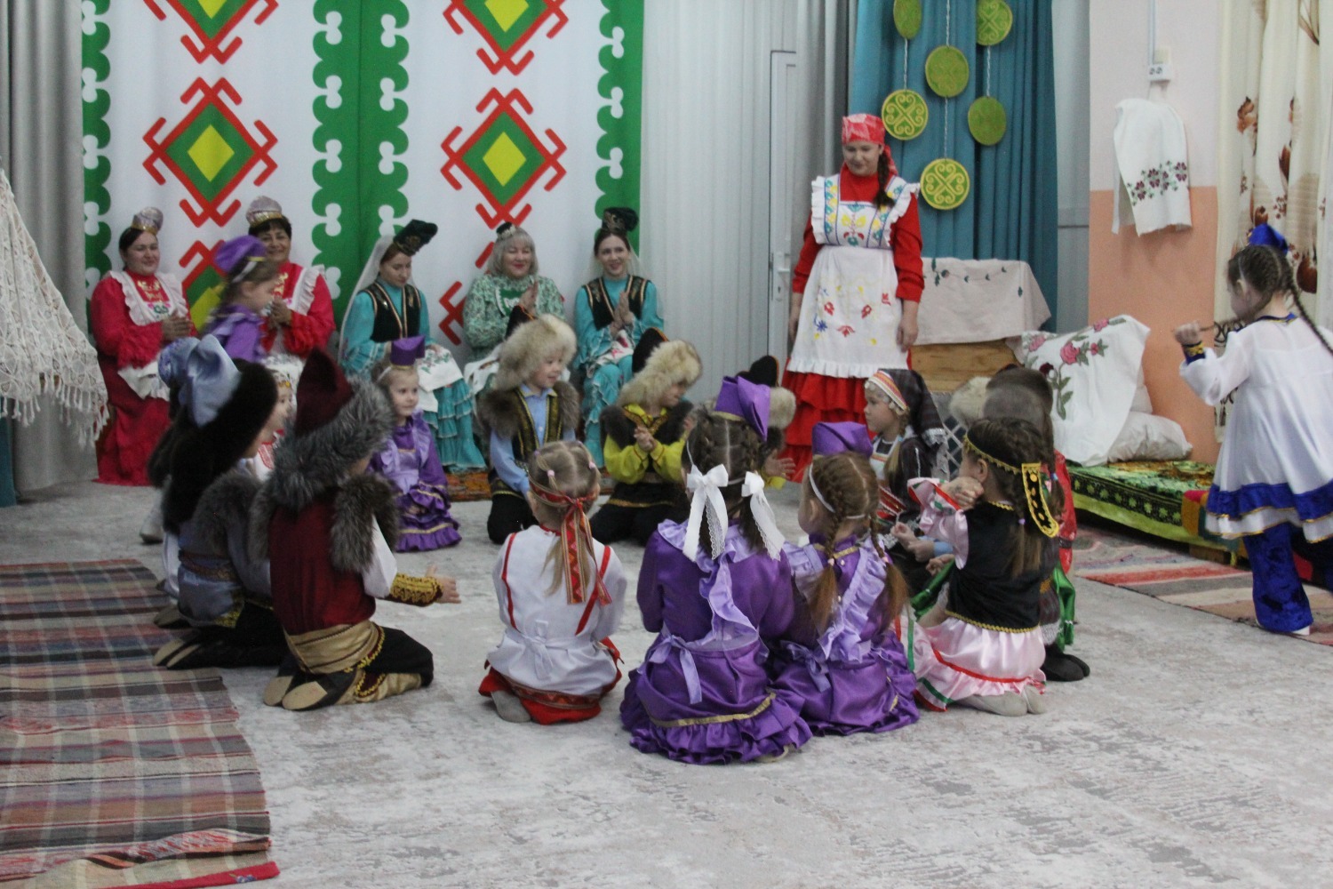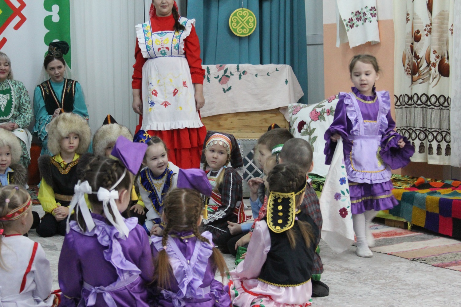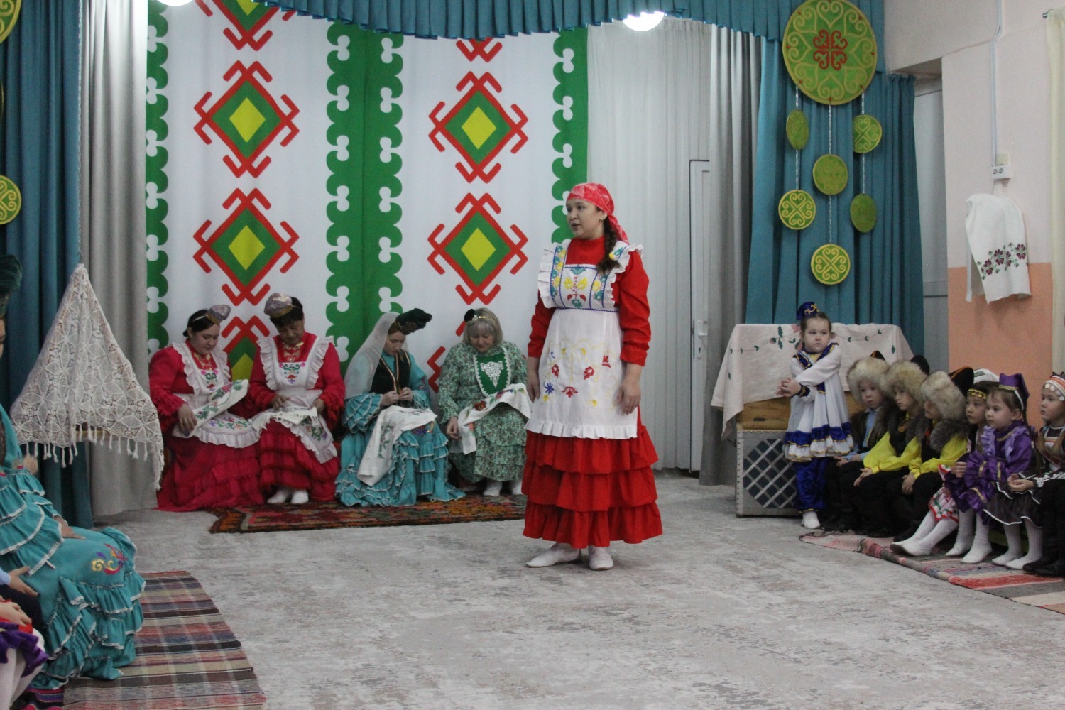 Зал өй кебек бизәлгән. Түрдә сандык, алдарак бишек эленгән. Дивар буенда сәкеләр урнашкан. Шат күңелле балалар серле сандыкның байлыклары, халкыбызның милли сәнгате, җирле фольклор, борынгы йолалар, истәлекләр белән таныштылар. Милли киемнәр, чигелгән сөлге, алъяпкыч, кульяулык, ашъяулыклар, түбәтәй, калфак... Уеннар, шигырьләр, традицион биюләр һәм мәкальләр... Тамырлары белән ерак үткәннәргә барып тоташкан сандык төбендә иде боларның серләре.