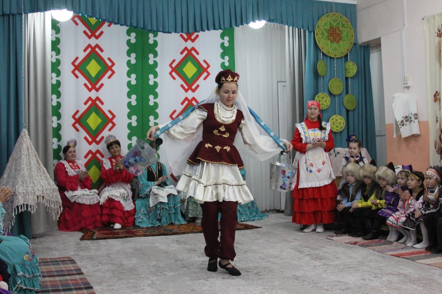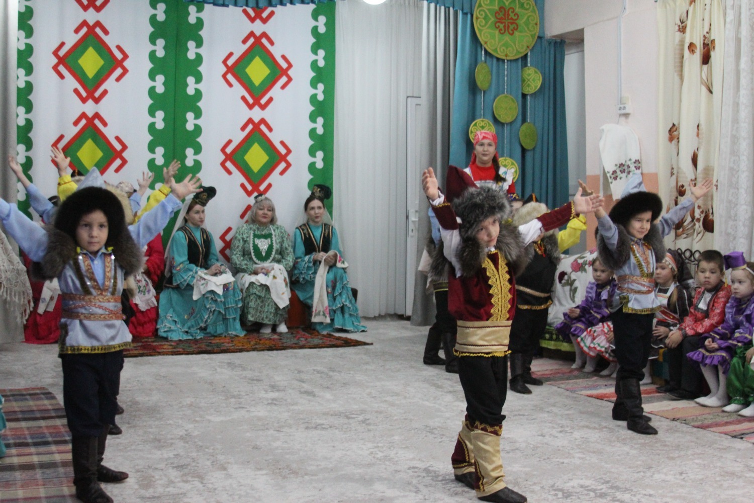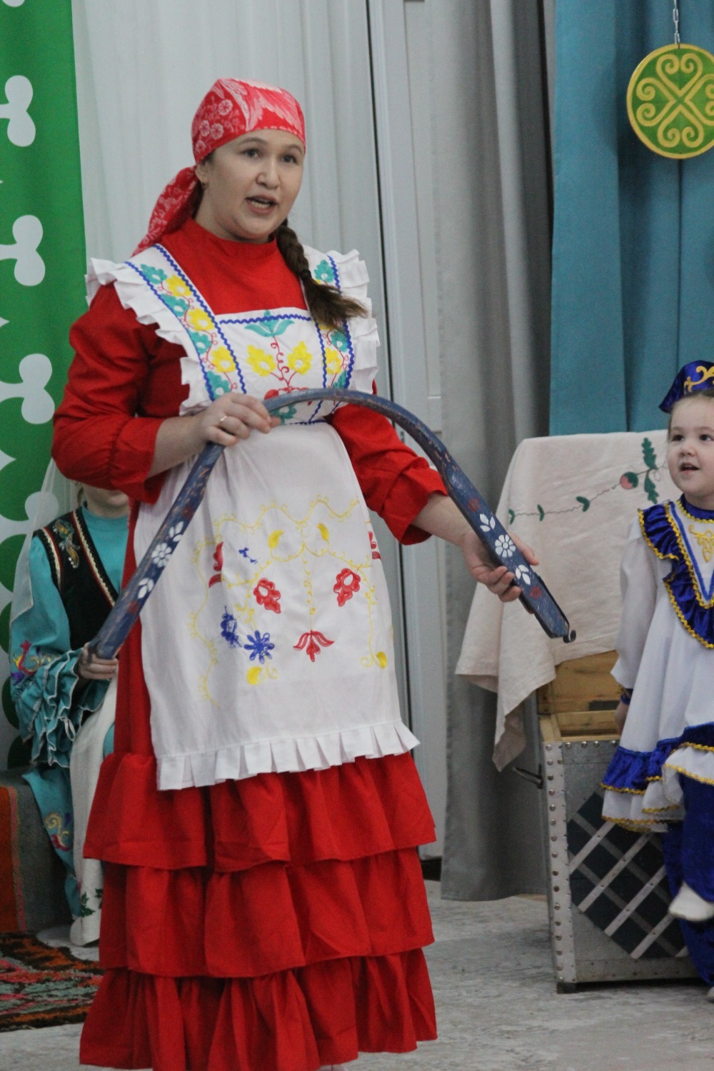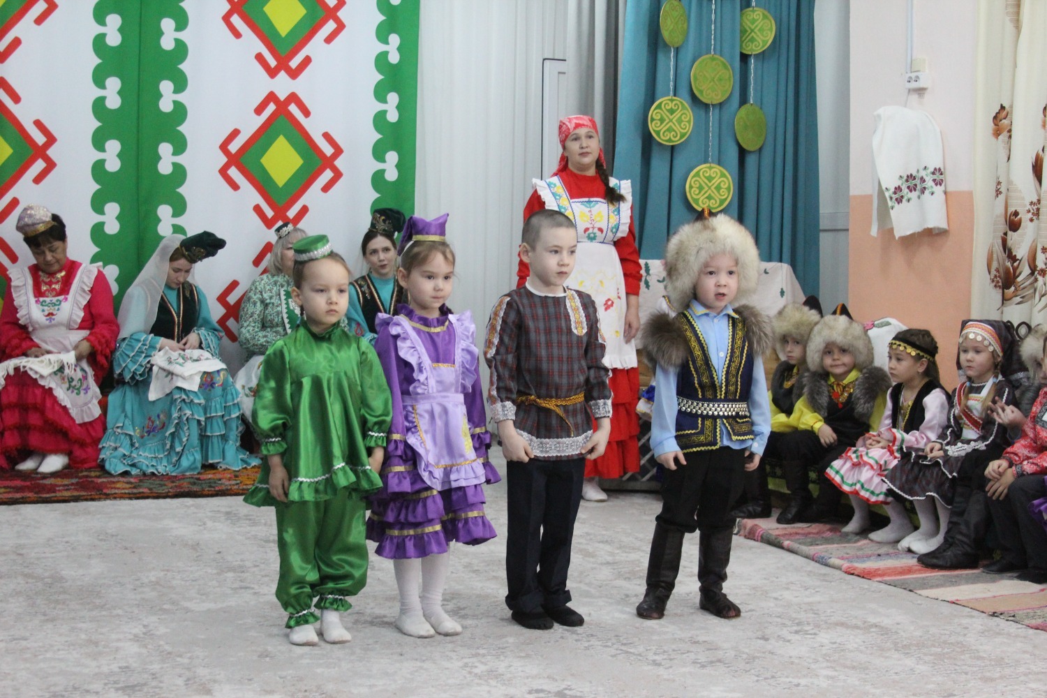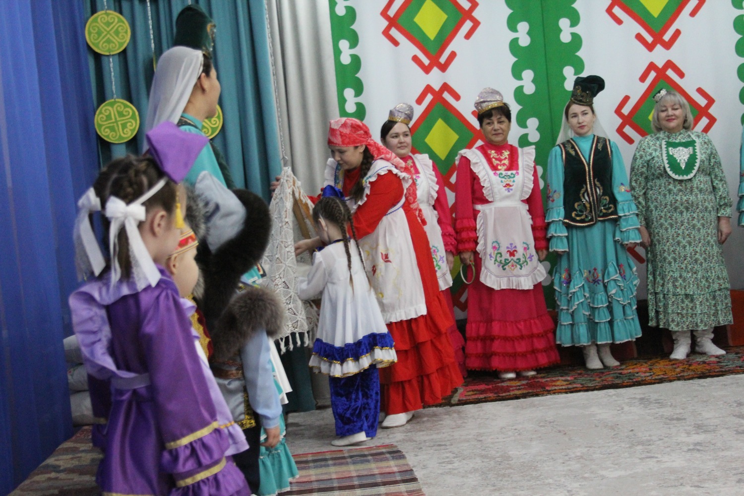 Зал өй кебек бизәлгән. Түрдә сандык, алдарак бишек эленгән. Дивар буенда сәкеләр урнашкан. Шат күңелле балалар серле сандыкның байлыклары, халкыбызның милли сәнгате, җирле фольклор, борынгы йолалар, истәлекләр белән таныштылар. Милли киемнәр, чигелгән сөлге, алъяпкыч, кульяулык, ашъяулыклар, түбәтәй, калфак... Уеннар, шигырьләр, традицион биюләр һәм мәкальләр... Тамырлары белән ерак үткәннәргә барып тоташкан сандык төбендә иде боларның серләре.