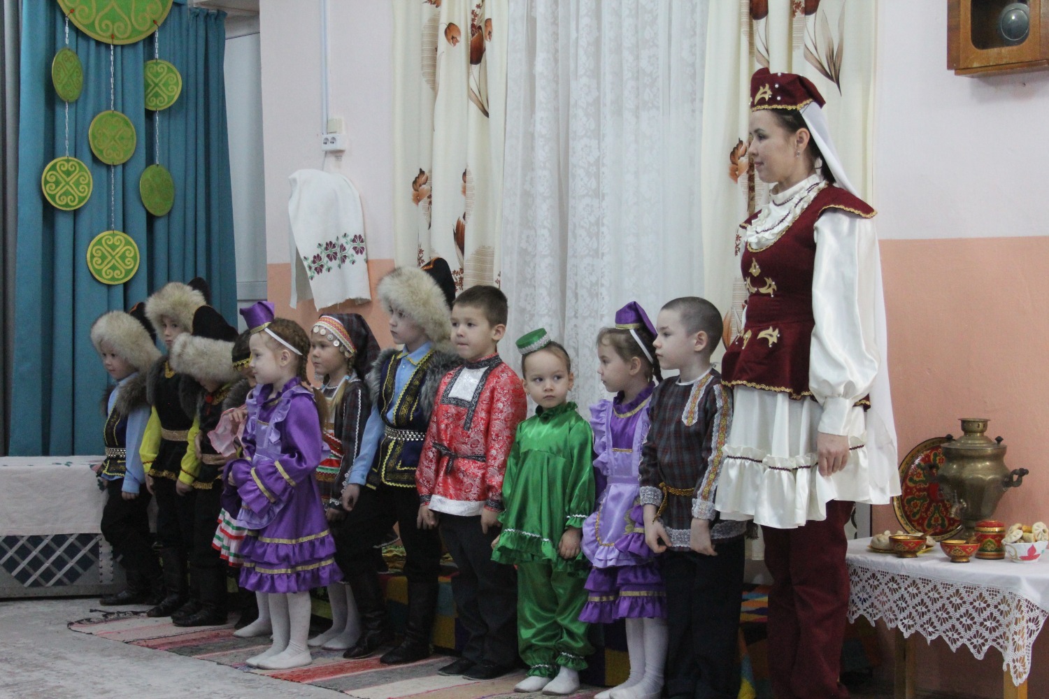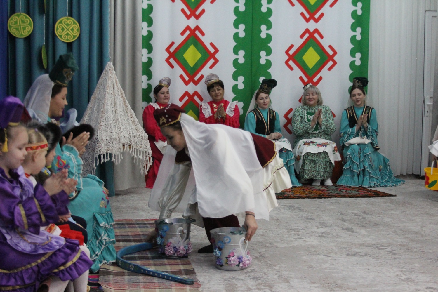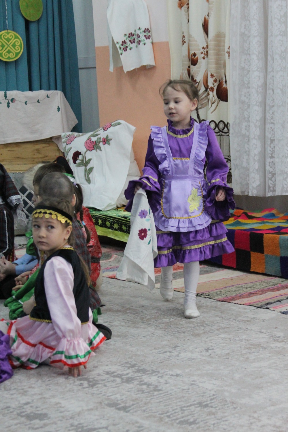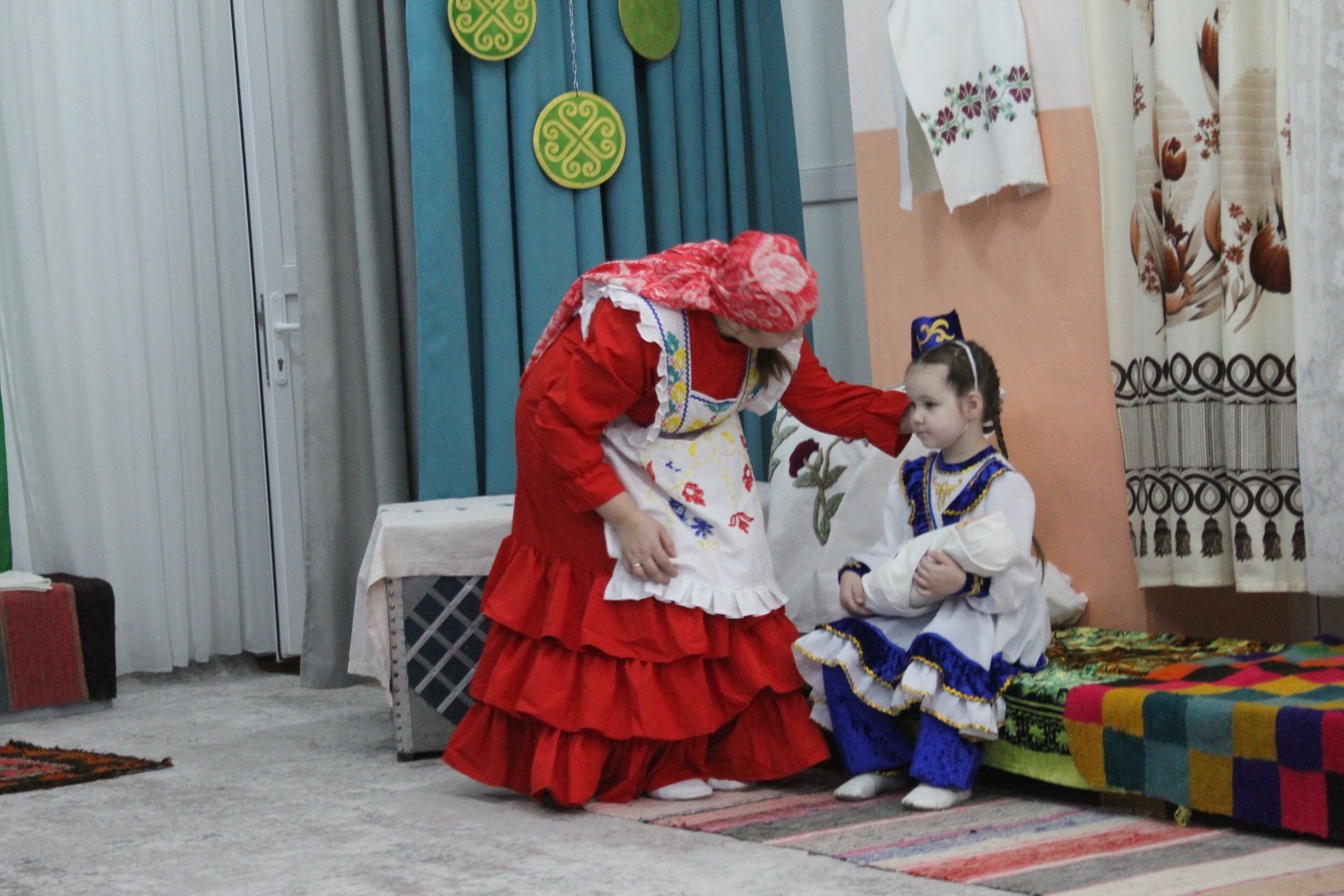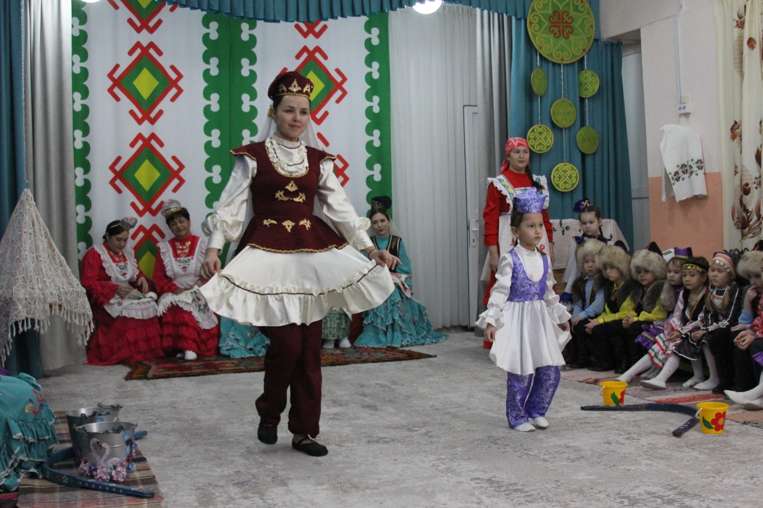 Зал өй кебек бизәлгән. Түрдә сандык, алдарак бишек эленгән. Дивар буенда сәкеләр урнашкан. Шат күңелле балалар серле сандыкның байлыклары, халкыбызның милли сәнгате, җирле фольклор, борынгы йолалар, истәлекләр белән таныштылар. Милли киемнәр, чигелгән сөлге, алъяпкыч, кульяулык, ашъяулыклар, түбәтәй, калфак... Уеннар, шигырьләр, традицион биюләр һәм мәкальләр... Тамырлары белән ерак үткәннәргә барып тоташкан сандык төбендә иде боларның серләре.