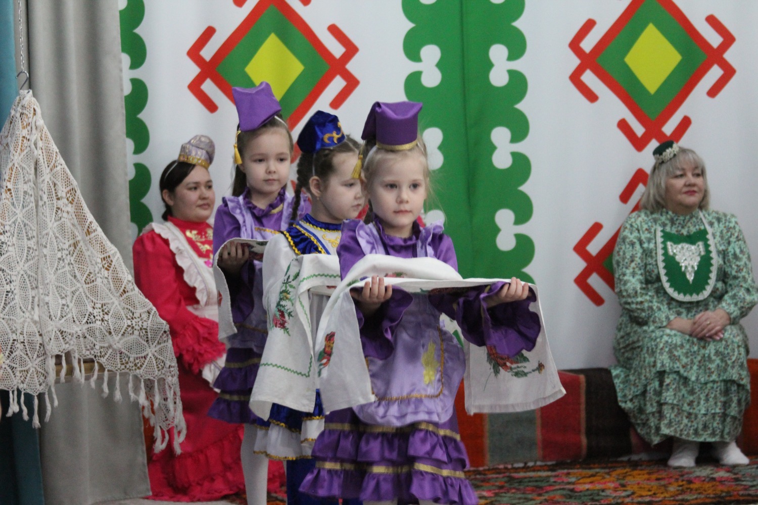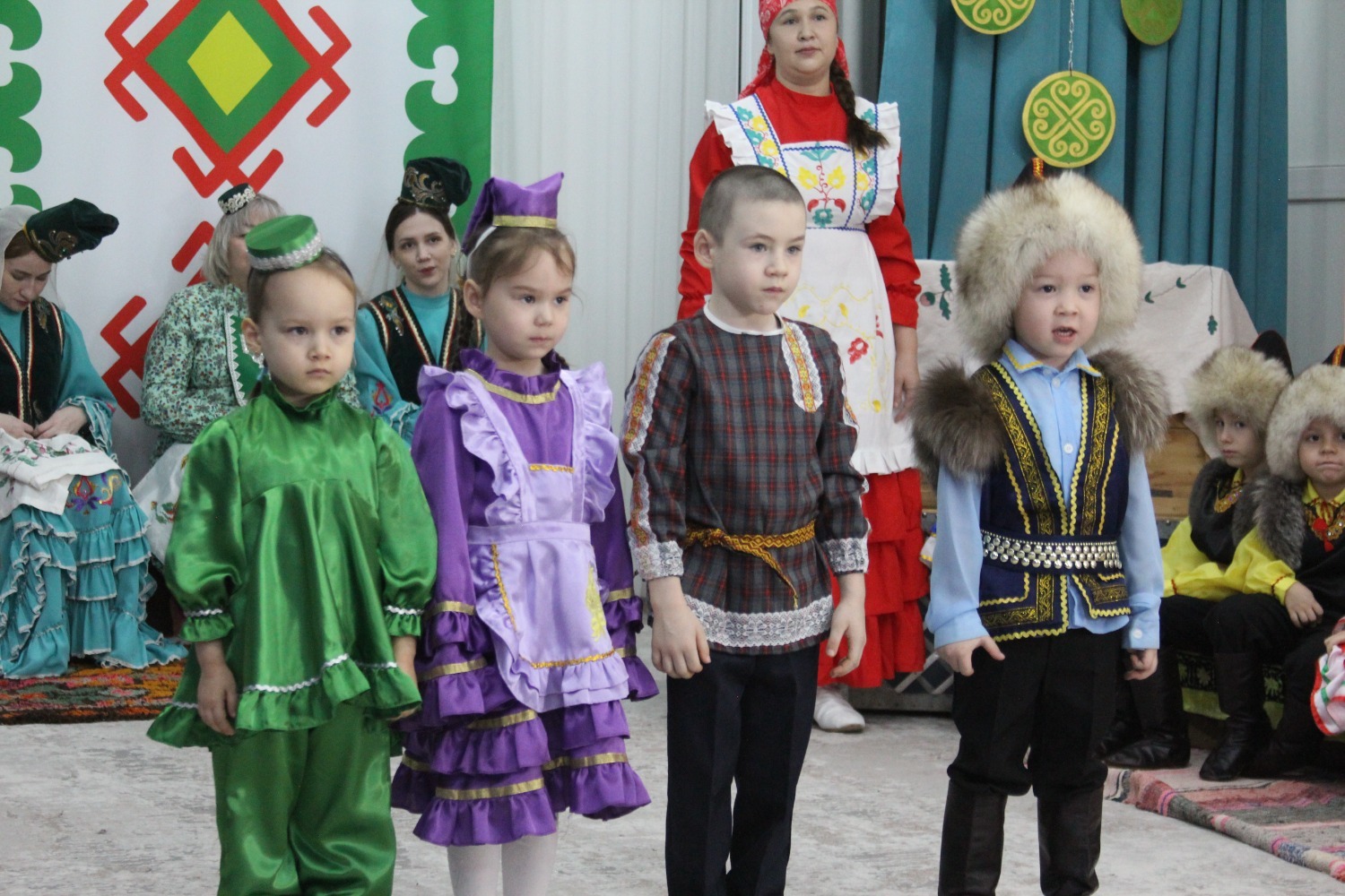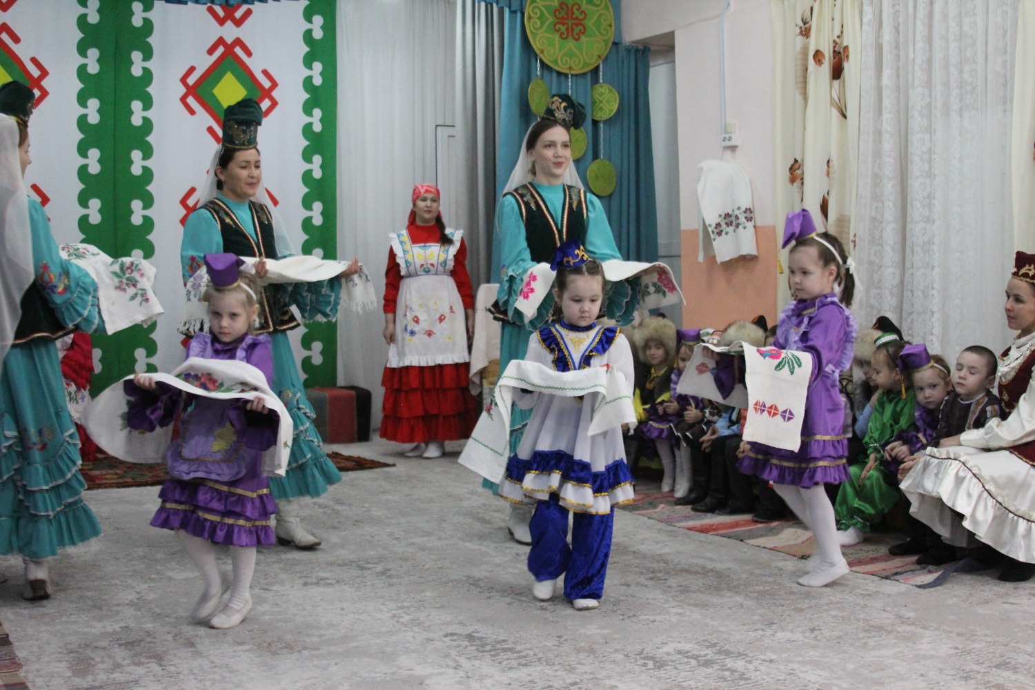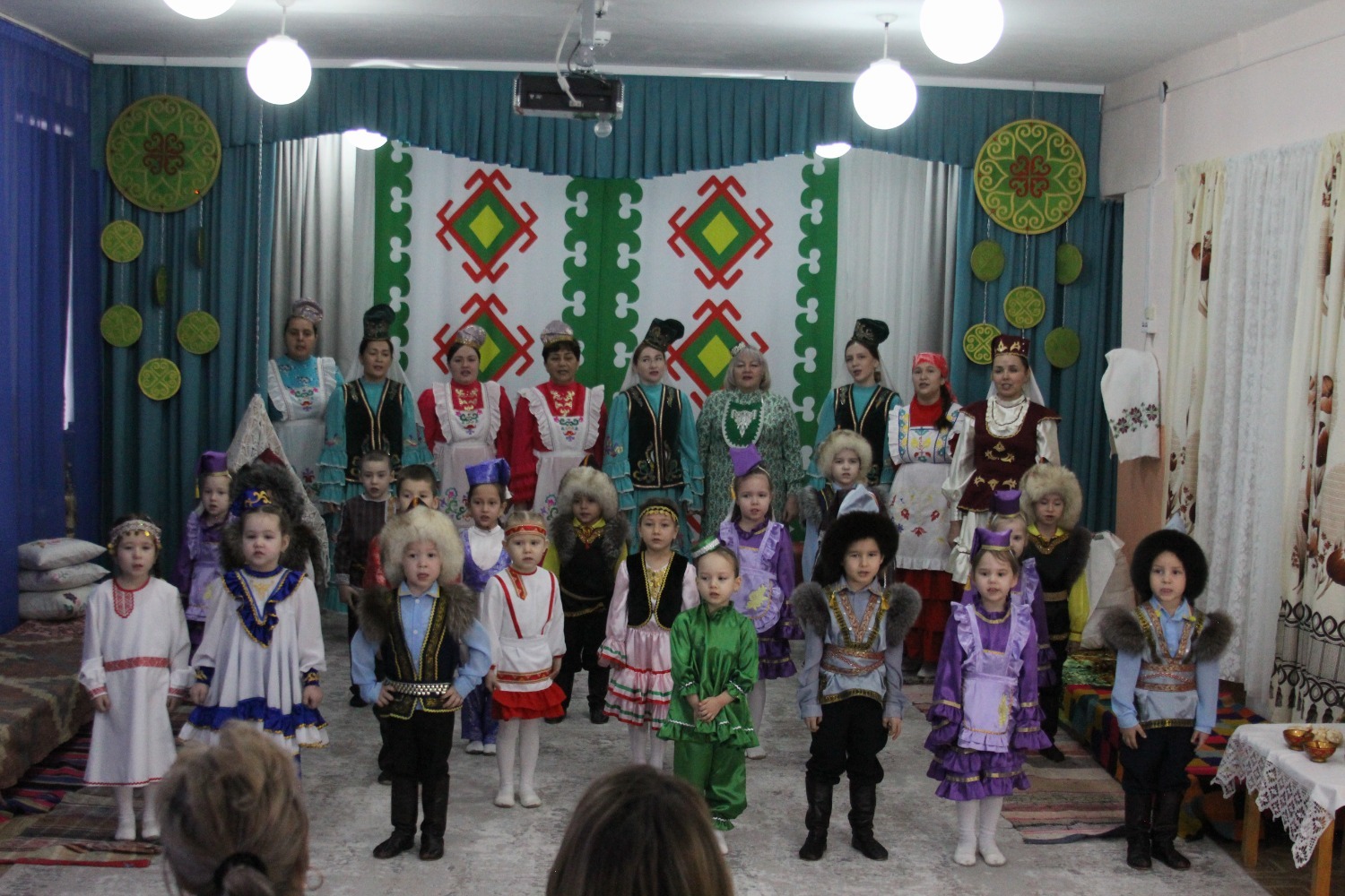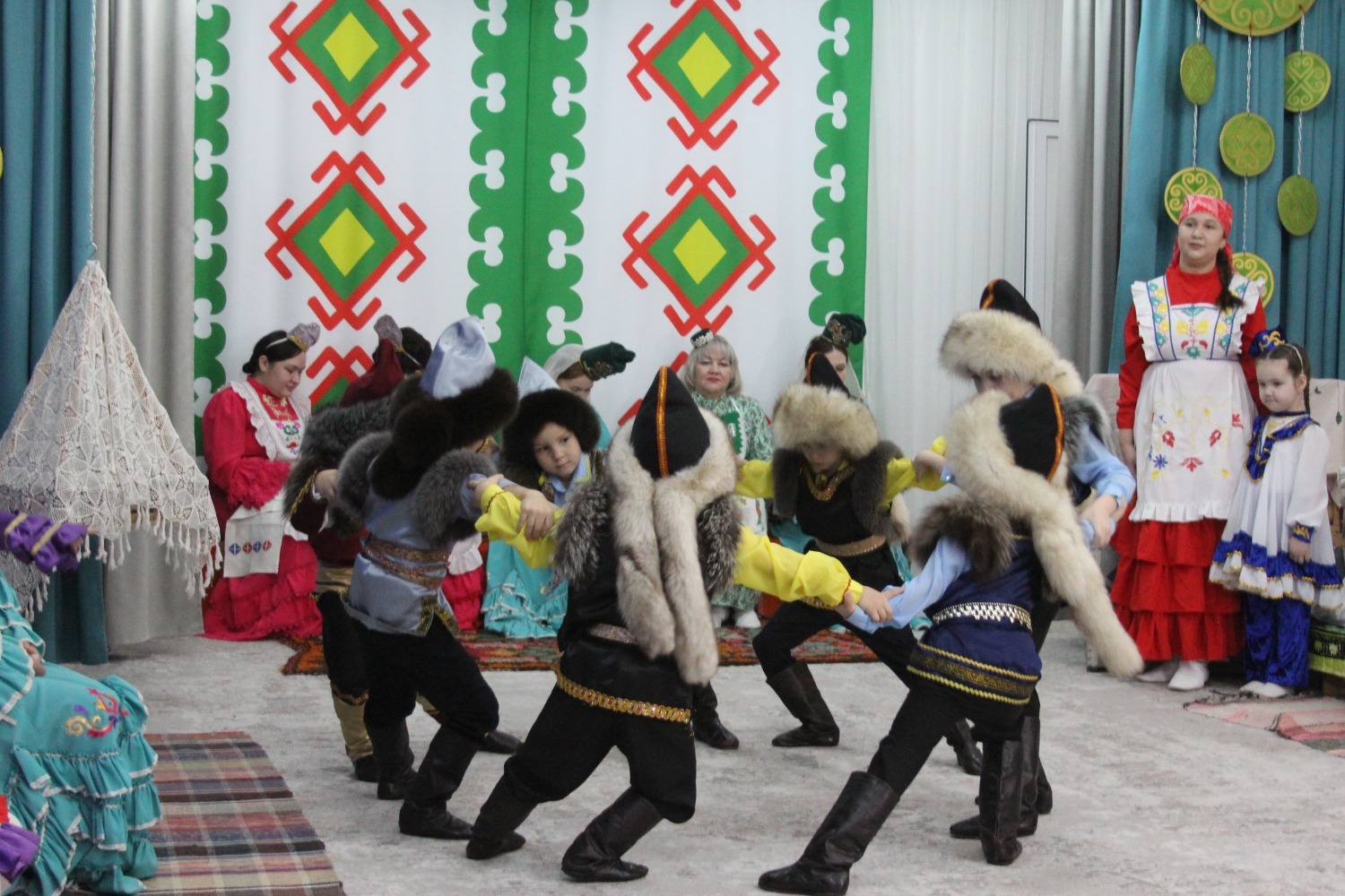 Зал өй кебек бизәлгән. Түрдә сандык, алдарак бишек эленгән. Дивар буенда сәкеләр урнашкан. Шат күңелле балалар серле сандыкның байлыклары, халкыбызның милли сәнгате, җирле фольклор, борынгы йолалар, истәлекләр белән таныштылар. Милли киемнәр, чигелгән сөлге, алъяпкыч, кульяулык, ашъяулыклар, түбәтәй, калфак... Уеннар, шигырьләр, традицион биюләр һәм мәкальләр... Тамырлары белән ерак үткәннәргә барып тоташкан сандык төбендә иде боларның серләре.