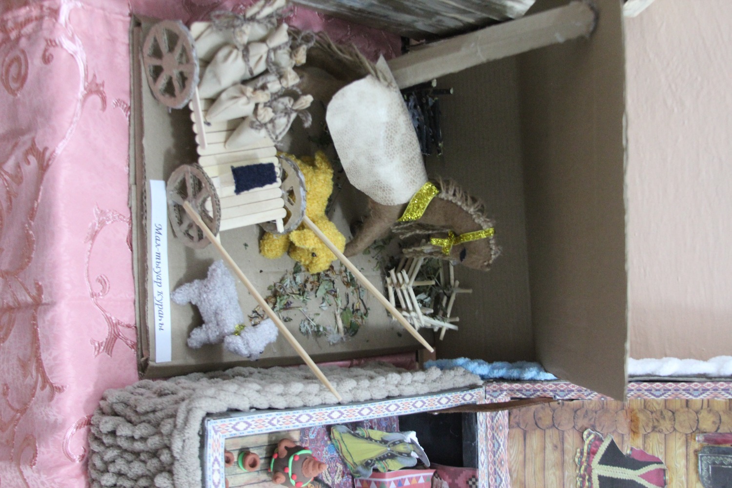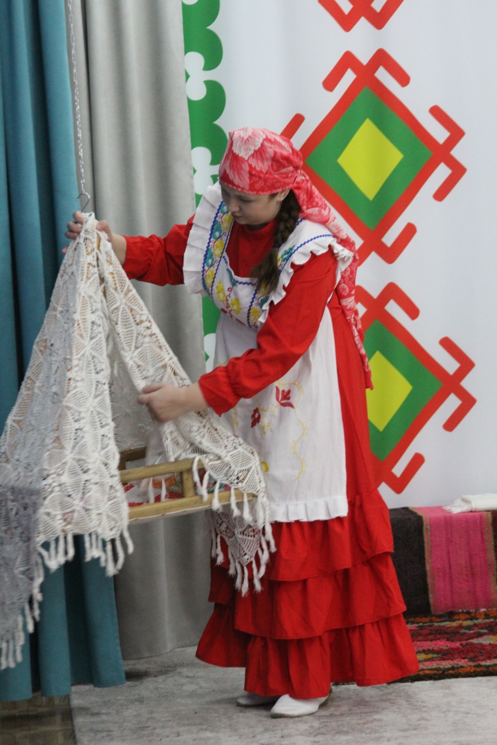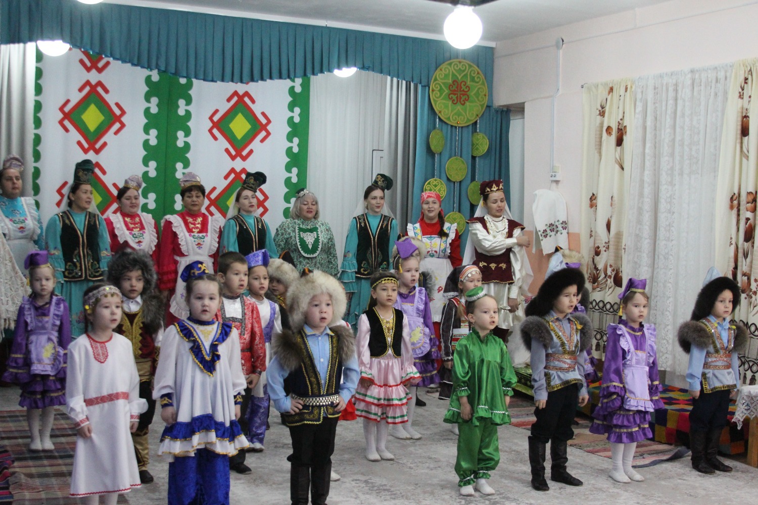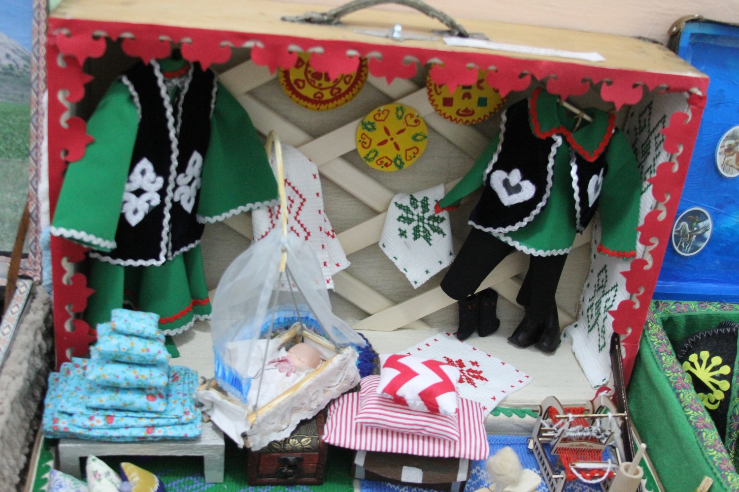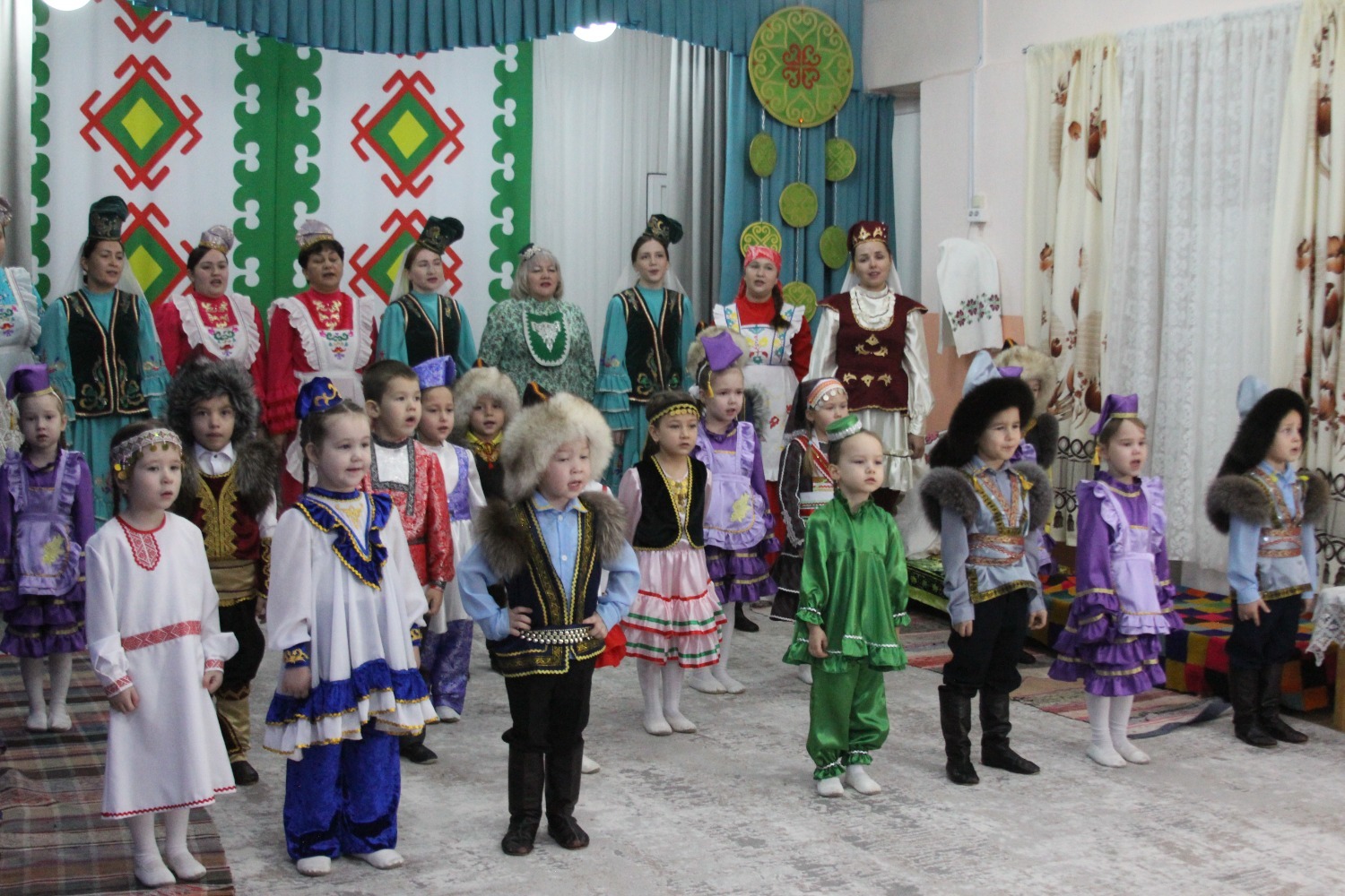 Зал өй кебек бизәлгән. Түрдә сандык, алдарак бишек эленгән. Дивар буенда сәкеләр урнашкан. Шат күңелле балалар серле сандыкның байлыклары, халкыбызның милли сәнгате, җирле фольклор, борынгы йолалар, истәлекләр белән таныштылар. Милли киемнәр, чигелгән сөлге, алъяпкыч, кульяулык, ашъяулыклар, түбәтәй, калфак... Уеннар, шигырьләр, традицион биюләр һәм мәкальләр... Тамырлары белән ерак үткәннәргә барып тоташкан сандык төбендә иде боларның серләре.