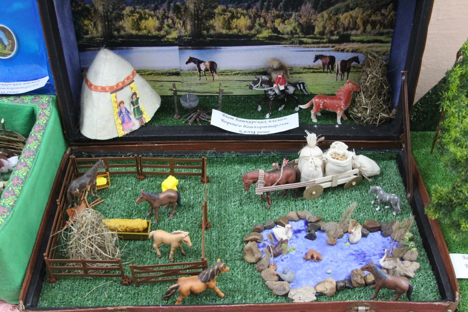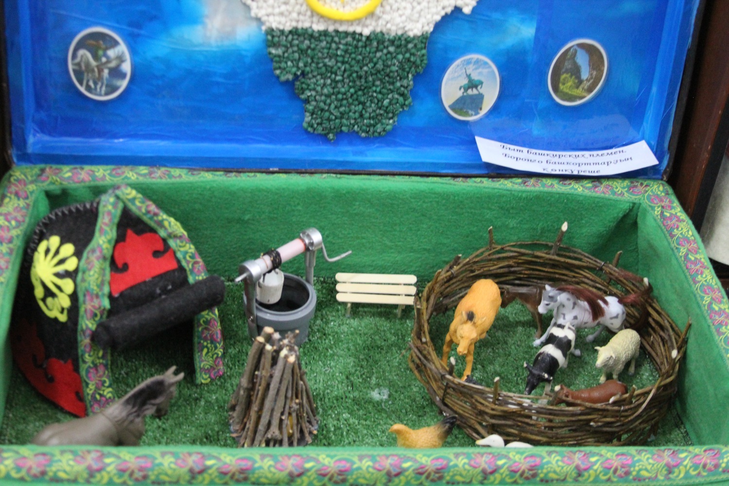 Башкорт халкына, фольклорына мәхәббәт һәм ихтирам тәрбияләү, халкыбызның гореф-гадәтләрен, буыннан-буынга истәлек булып калган әйберләрләрнең исемнәрен хәтердә калдыру максатыннан әзерләнгән «Әбиемнең серле сандыгы» дип аталган килгән кунакларның күңеленә хуш килде.