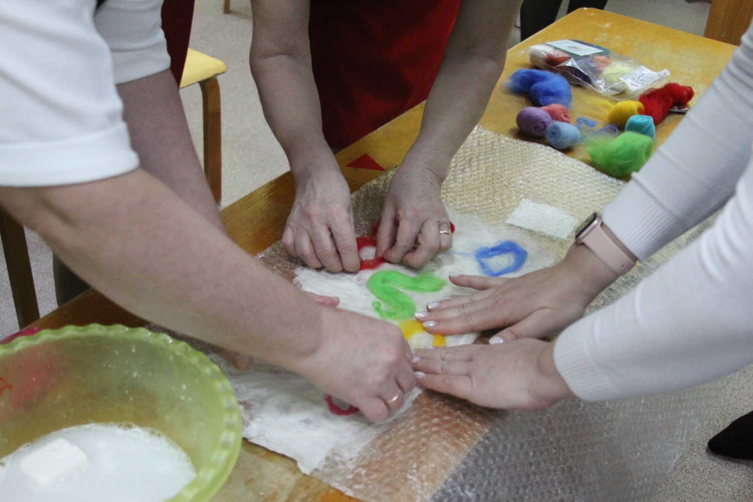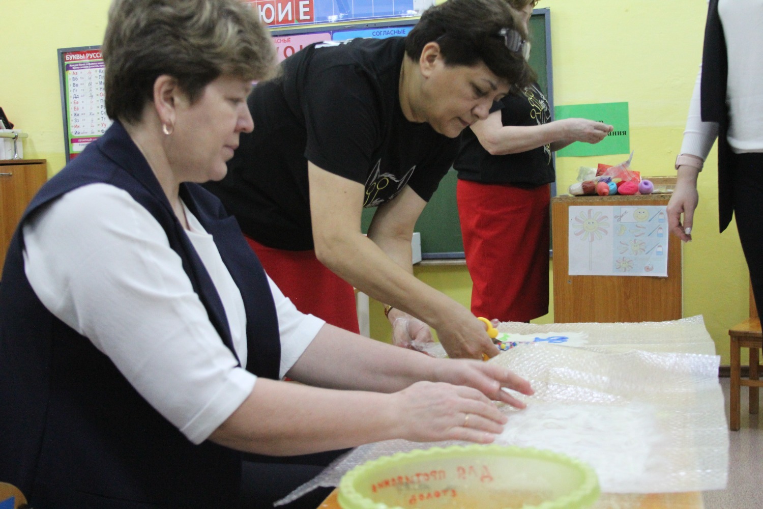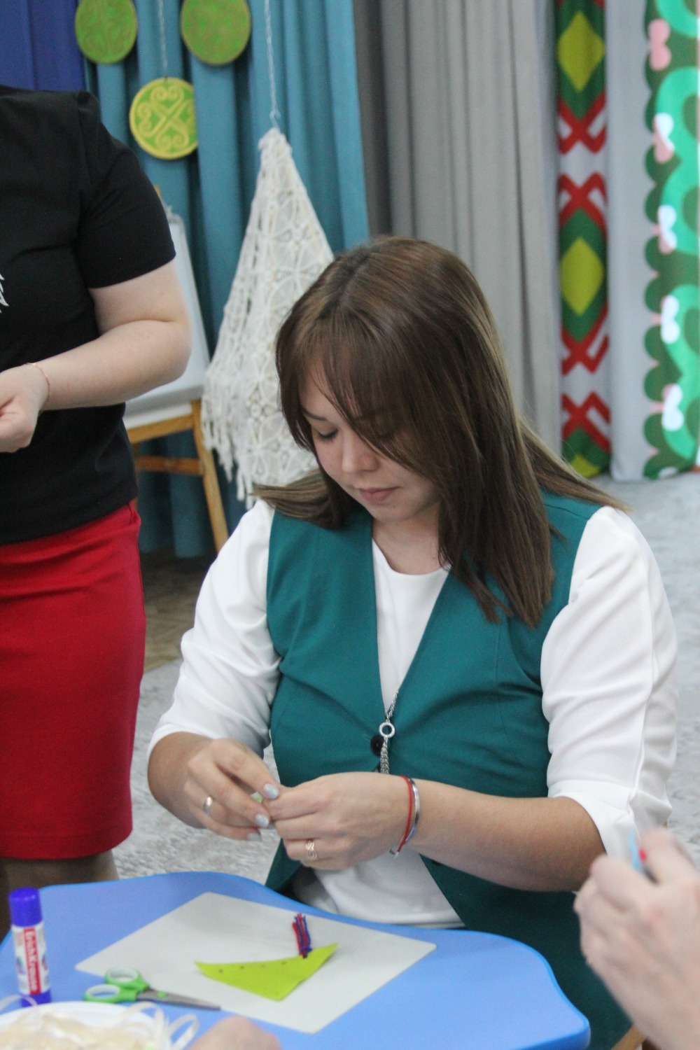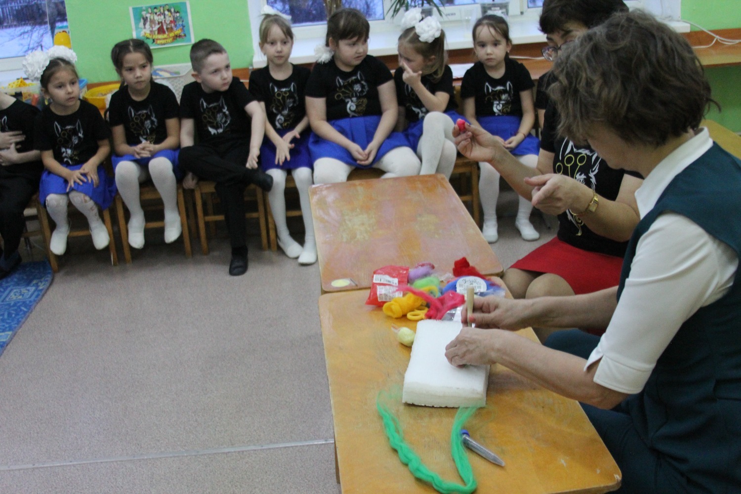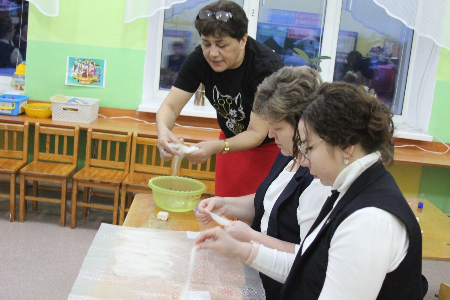 Семинарның практик өлешендә Рита Мөхтәсарова әзерлек төркемендә «Борынгы башкорт этнографиясе» танып белү дәресе үткәрде. Балалар башкорт халкының орнаменты белән таныштылар. Ә тәрбиячеләр өчен йоннан әйберләр ясау буенча осталык дәресе бик кызыклы үтте.