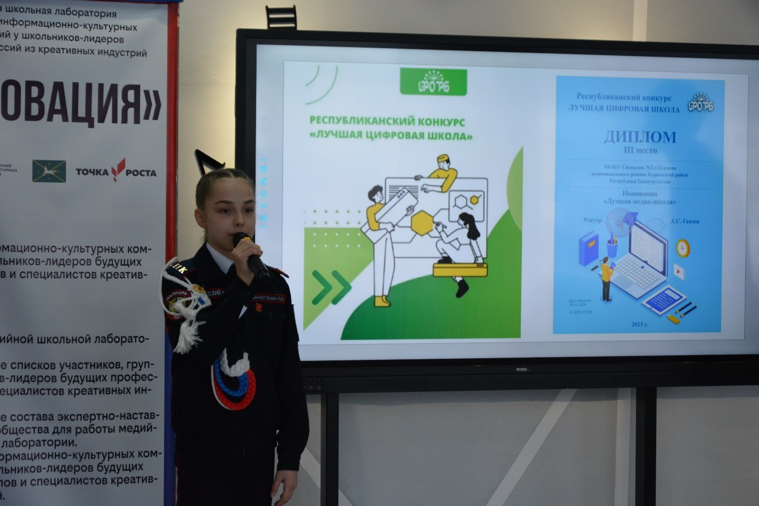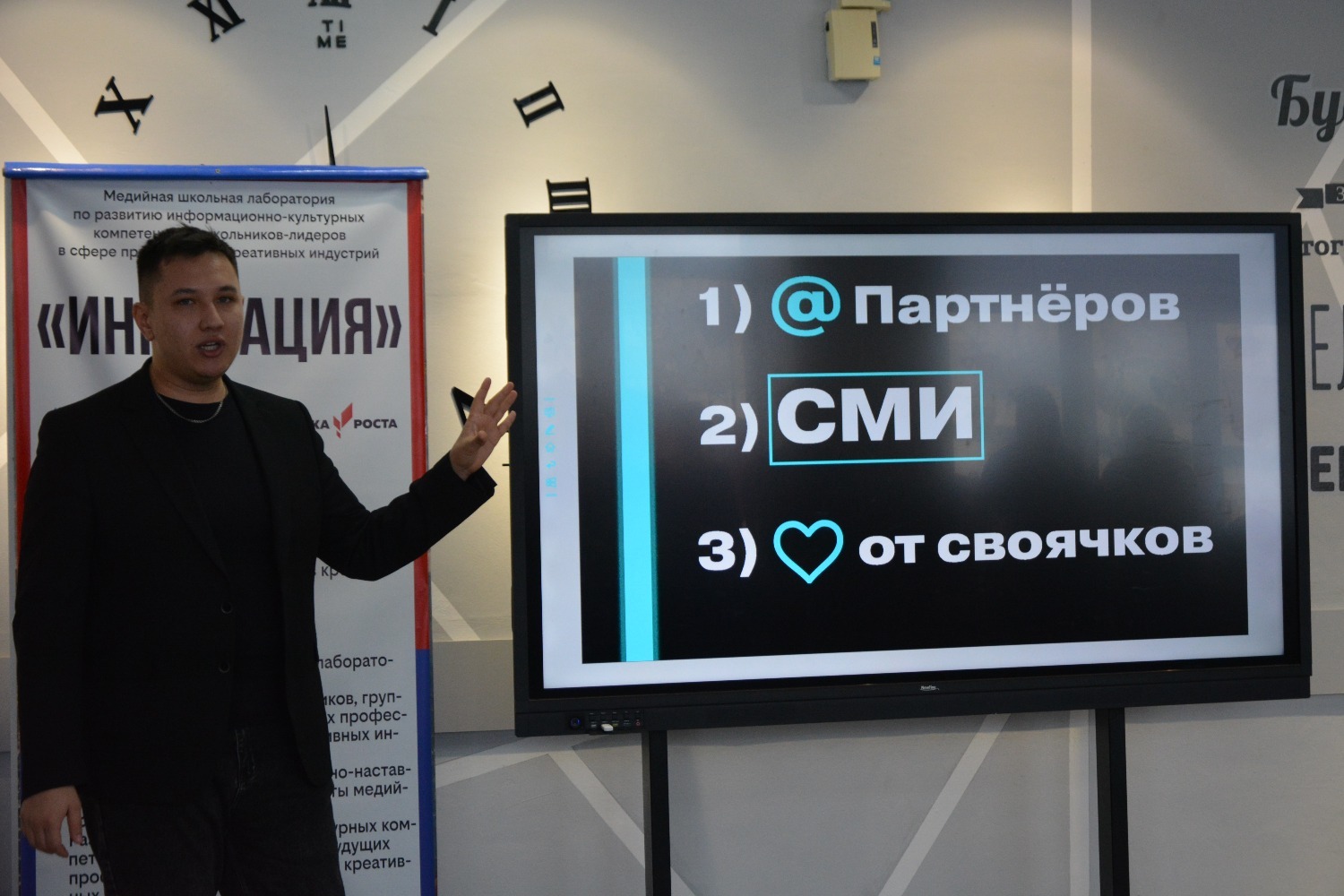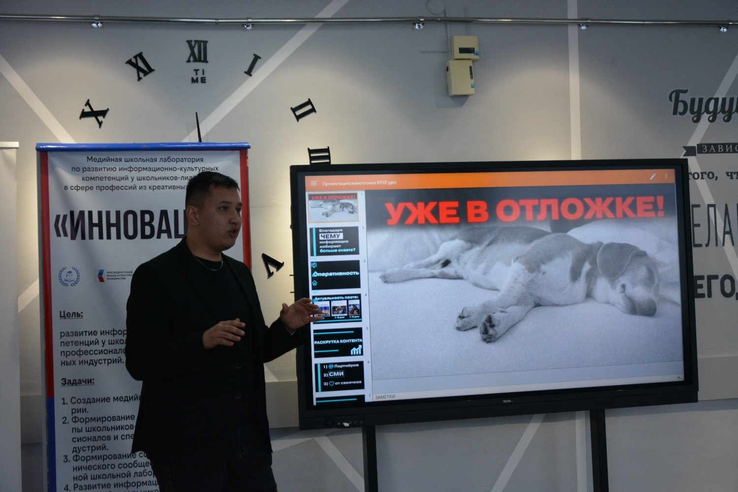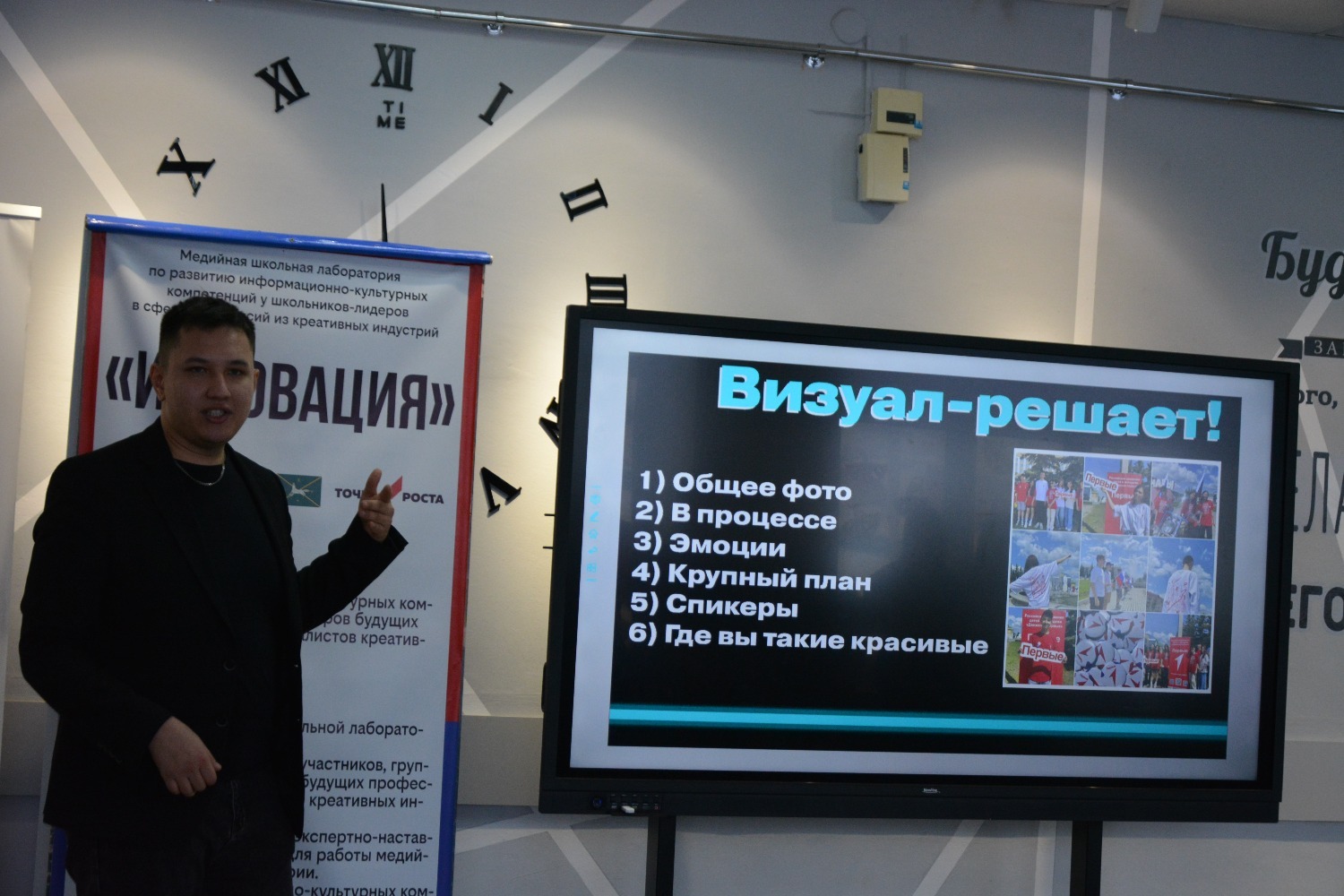 Конференция барышында «Инновация» медиалабораториясендә медиачылар мәдәни инициативаларның президент фондында җиңү кысаларында сатып алынган икенче грант конкурсы җиһазларының эше, укучыларының проектлары турында сөйләделәр, медиалаборатория казанышлары белән уртаклаштылар, ә Марсель Гафиятуллин «Социаль челтәрләрдә постлар бастыру» темасына кызыклы осталык дәресе үткәрде. Конференция панель дискуссия белән тәмамланды, анда Алик Рамил улы кураторлар Әлфидә Дүсмәтовага, Җәмил Әхмәтгалиевка, Илгиз Харисовка, Айгөл Таҗетдиновага, "Беренчеләр хәрәкәт"енең төбәк бүлекчәсе вәкилләре Марсель Гафиятуллинга һәм Марсель Хафизовка Рәхмәт хатларын, шулай ук гимназия директоры «Инновация» медиалабораториясе җитәкчесе Әнисә Мортазинага Русия Федерациясе Дәүләт Думасы депутаты Динар Гыйльметдинов исеменнән Рәхмәт хатын тапшырды.