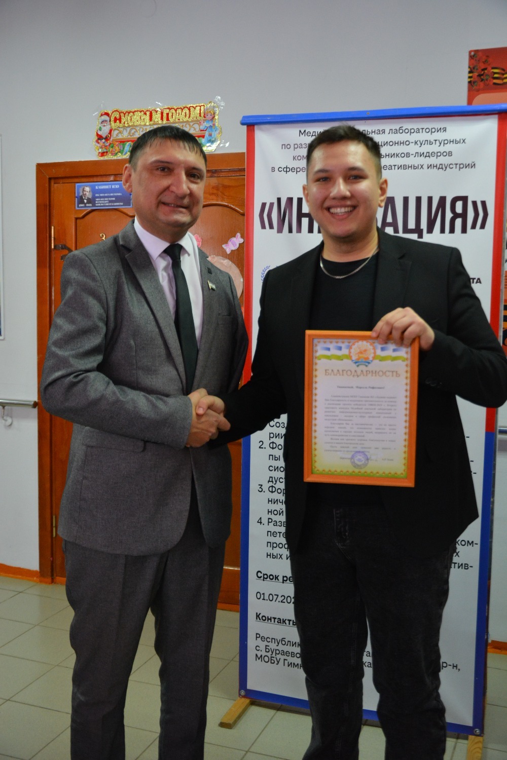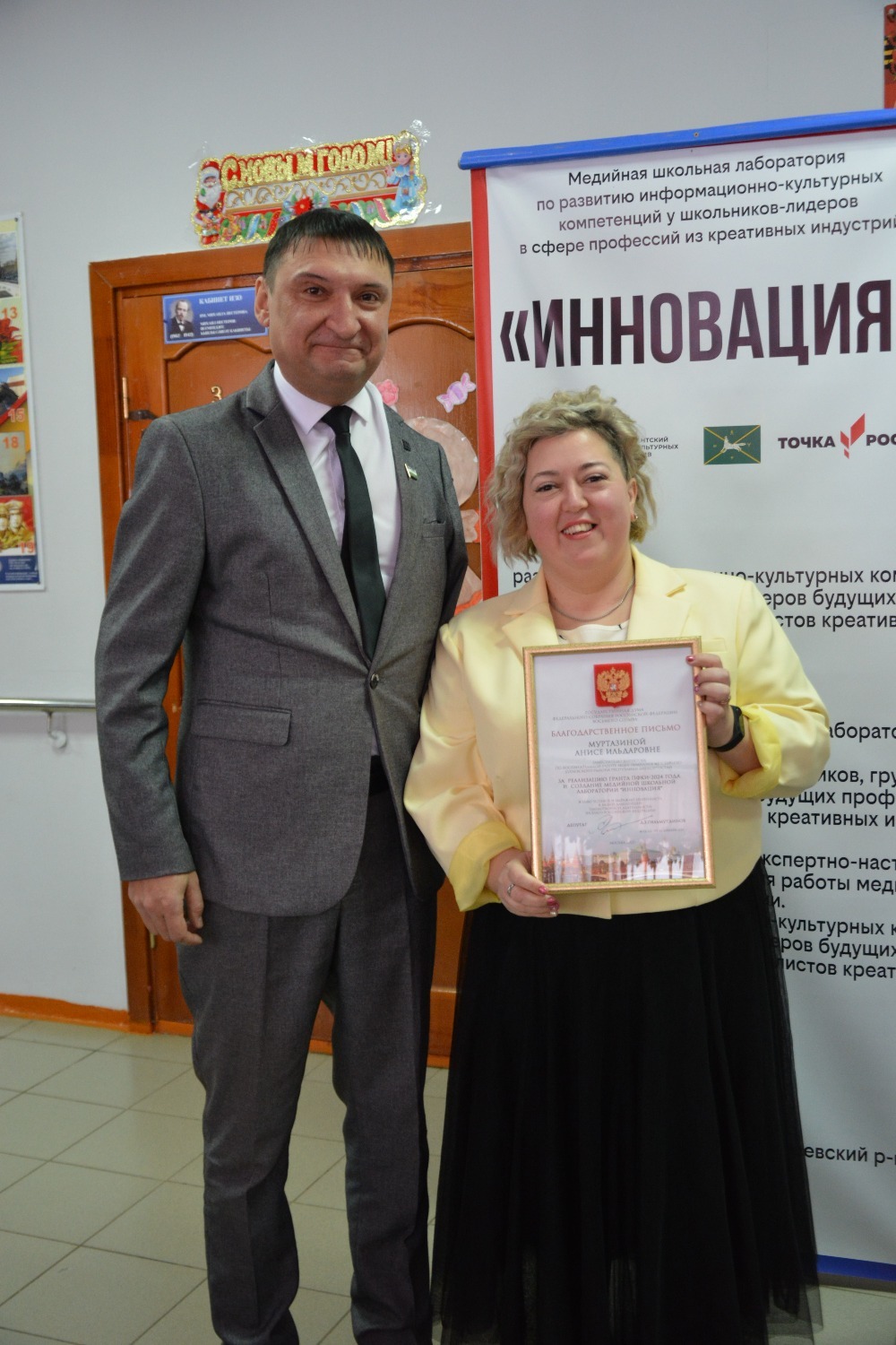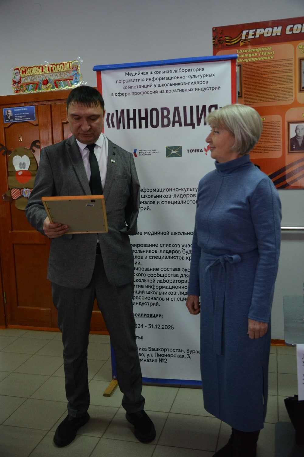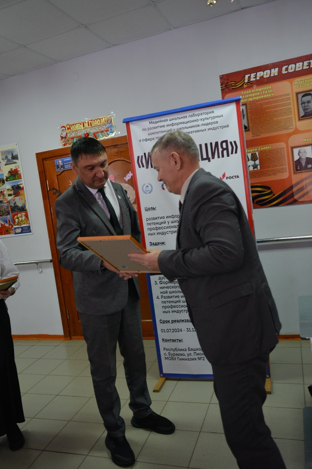 Кунакларны Борай авылының икенче гимназиясе директоры Алик Усаев һәм мәгариф бүлеге начальнигы Илдус Мостафин сәламләде.