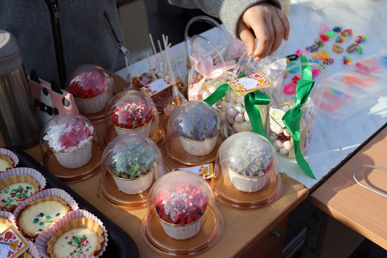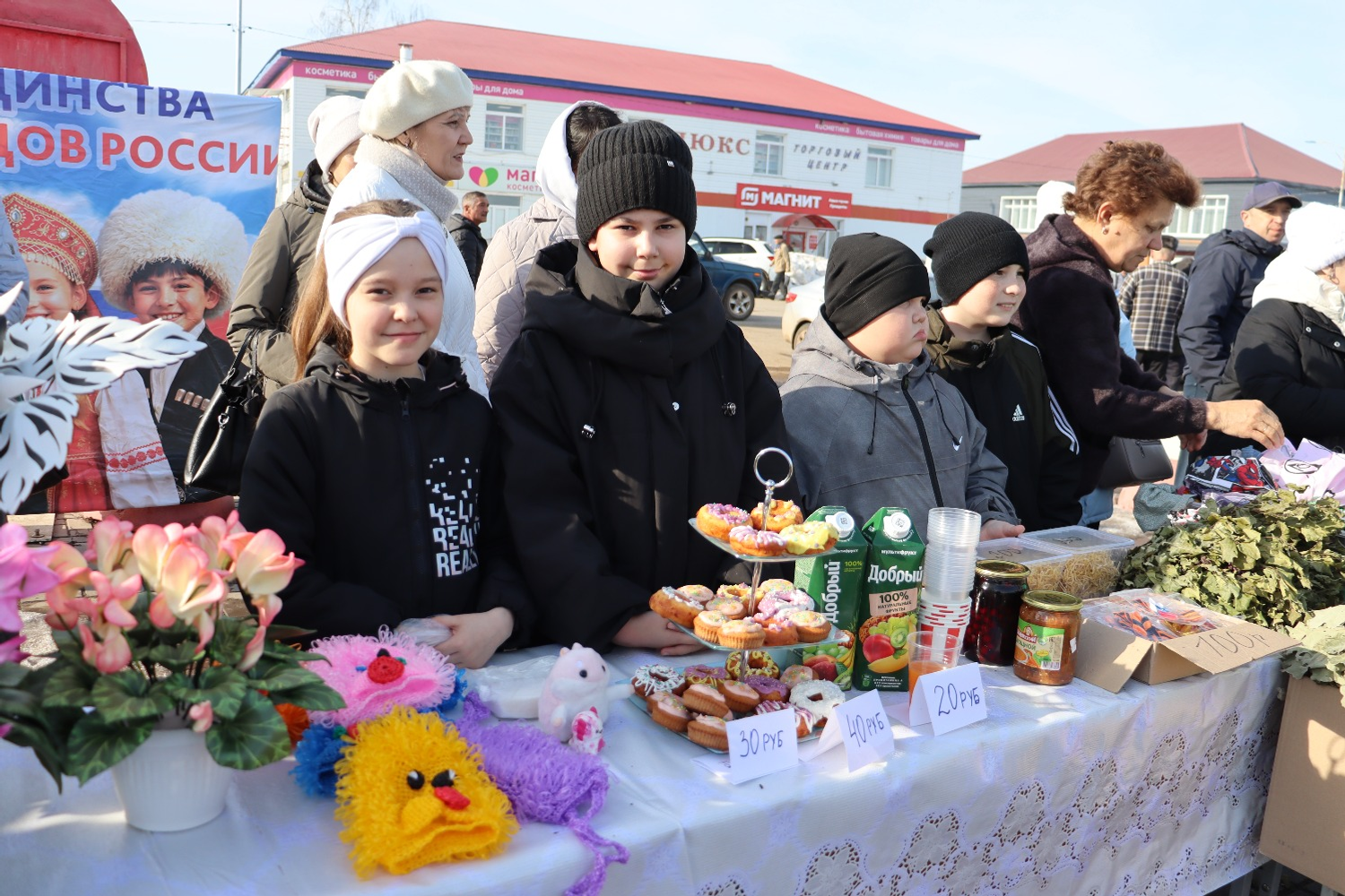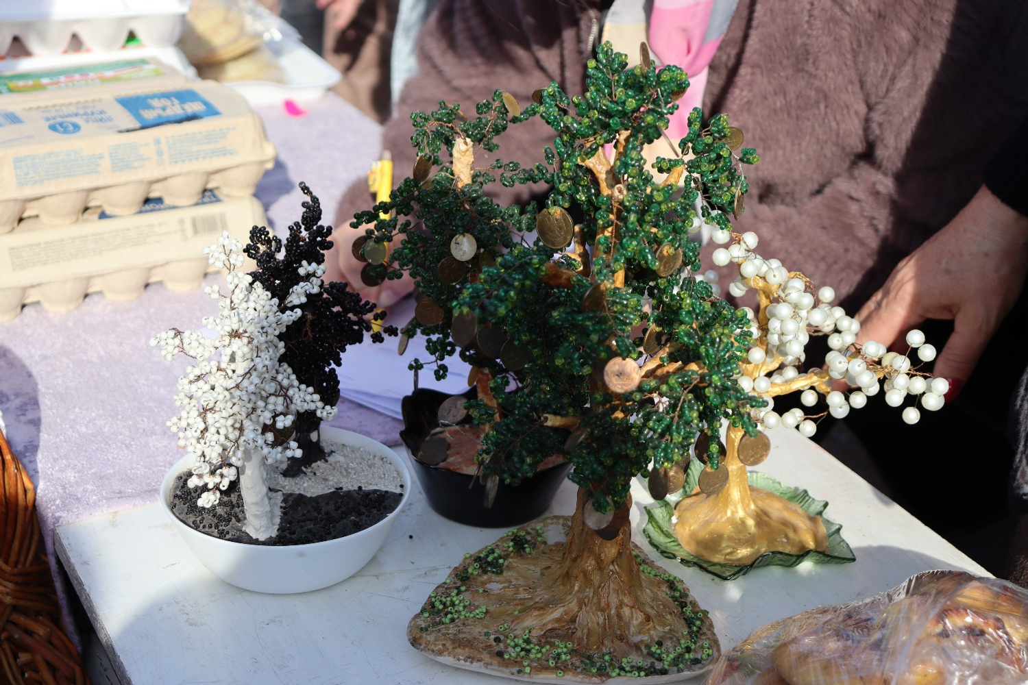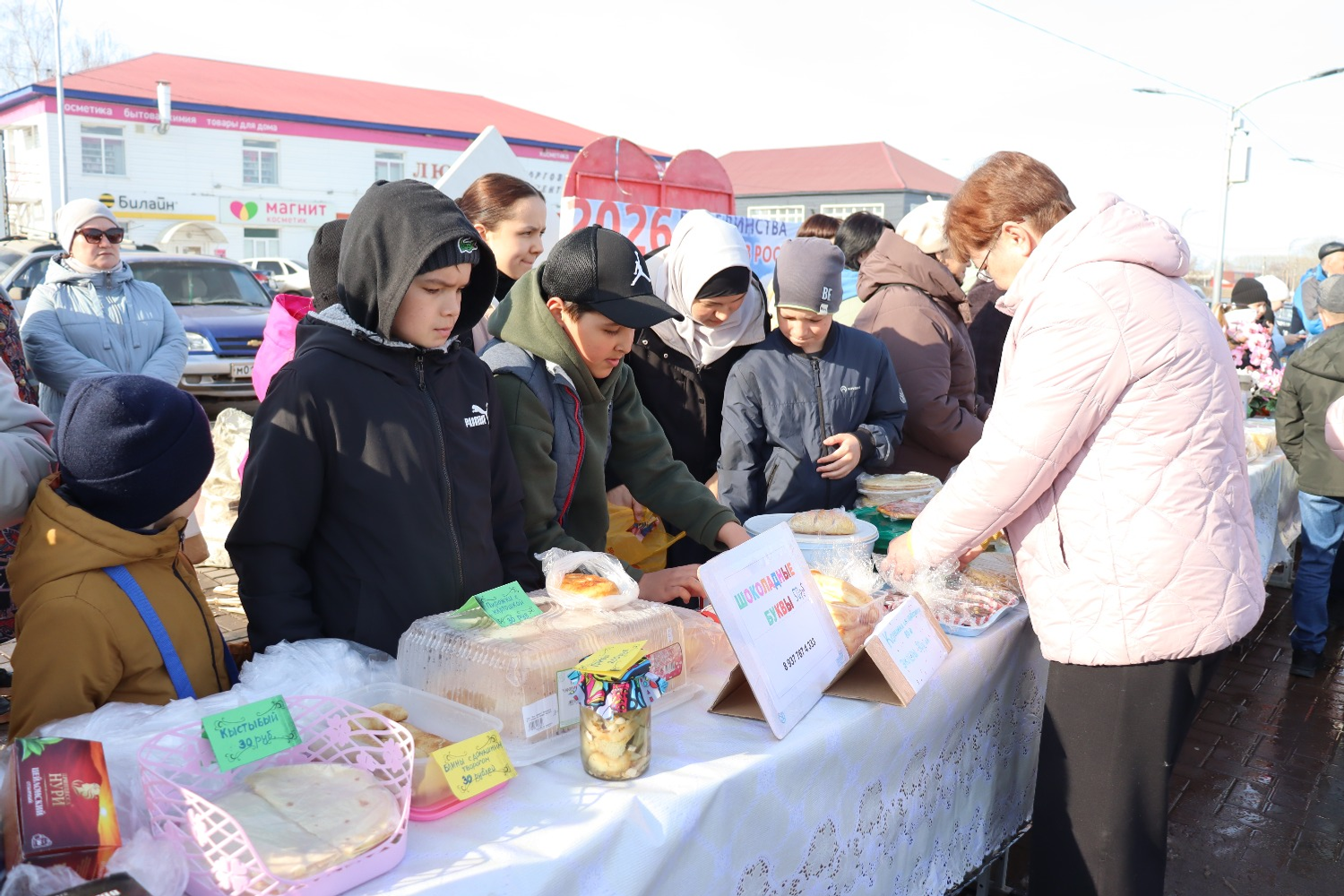 Сату нокталарында бакчада үскән уңышлар, сөт, йомырка, каймак, бал, гөлләр, үсентеләр, төрле кайнатма, кул эшләре, агач эшләнмәләре һәм пешкән әйберләрдән ни генә юк иде! Һәр мәктәп үзенең сату урынын зәвыклы, матур итеп, ел темасын ачыклап бизәргә тырышкан. Биредән әйбер сатып алмыйча, тыныч кына үтеп китәрлек түгел иде.