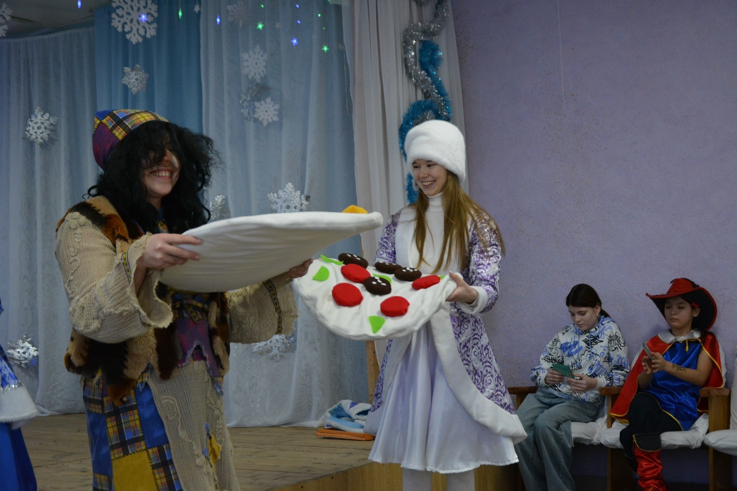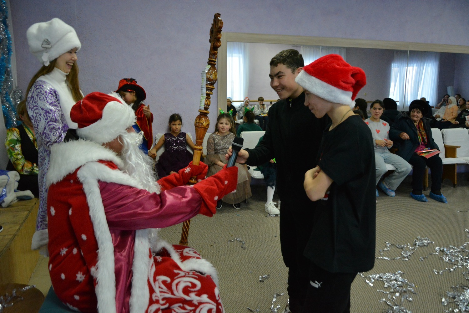 Почувствовать праздничную, новогоднюю атмосферу ребятам помогли хороводы с разнообразными конкурсами и играми, а также желанные подарки и вкусные гостинцы. Развлекали детей Дед Мороз и Снегурочка, которым дети читали стихи, пели песни, а также всеми любимые персонажи из сказок и мультфильмов.