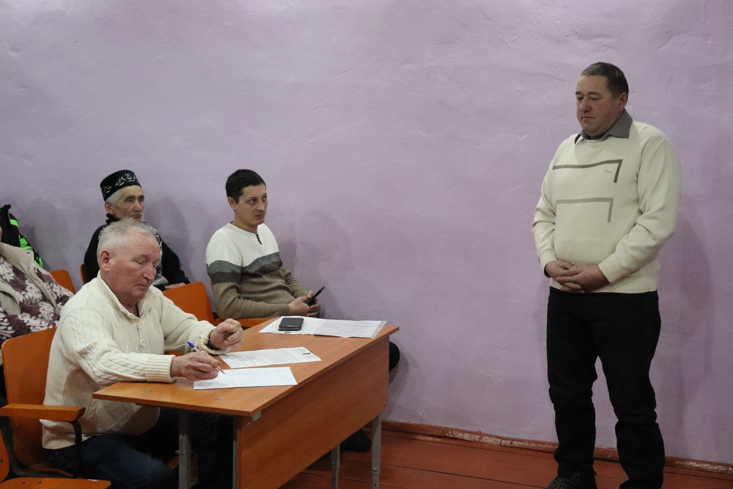 Җыелышта район Советы секретаре Илшат Камалов, районның төрле оешма җитәкчеләре, авыл советы депутатлары һәм авыл биләмәсе халкы катнашты. Утырышта “Кама” һәм “А7 Агро-РБ” җәмгыятьләре, Р. Хәлилов, И. Әгъләмова, А. Әгъләмов, М. Хәсәнов, Р. Әхәтов крестьян-фермер хуҗалыклары башлыклары да үзләренең хуҗалык эшләренә отчет тоттылар. Җыелышта катнашучыларның актив эш атмосферасы авыл биләмәсе хакимиятенең эш нәтиҗәләре турында нәтиҗәле фикер алышырга һәм киләчәккә бурычлар билгеләргә мөмкинлек бирде. Халыкны кызыксындырган барлык сорауларга җентекле җаваплар бирелде һәм барысы да алга таба карау өчен контрольгә алынды