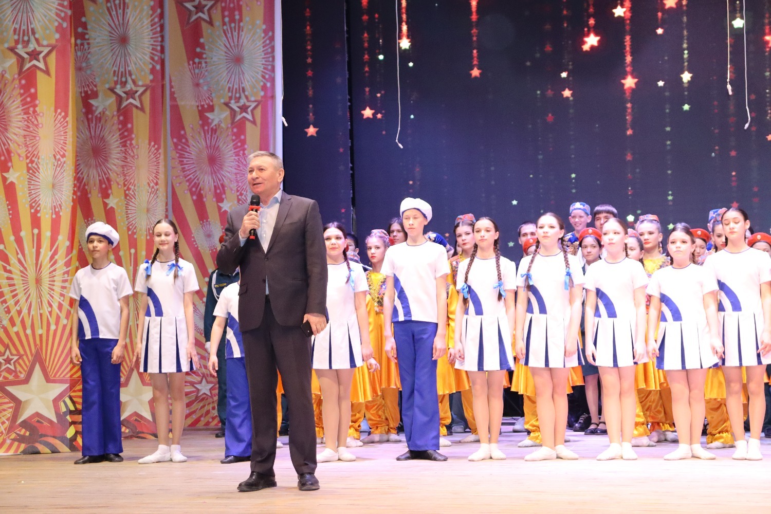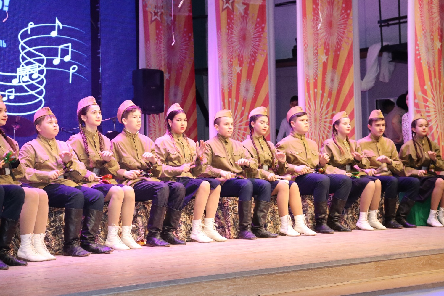 Программа фестиваля была очень насыщенная. «Солдатская сюита» (хореографическое отделение «Нур» ДШИ. Художественный руководитель Сарварова З.Ф.), «Защитники Отечества» (детский вокальный ансамбль МОБУ СОШ д. Новотазларово. Художественный руководитель Суфиянов Ф.М.), Композиция на песню «Едут по Берлину наши казаки» (ансамбль ложкарей Агро класса МОБУ СОШ №1. Руководитель. Нуриахметова Г.Р.), «Чулочки» М.Джалиль. Малик Арсланов (МОБУ Гимназия №2). Художественный руководитель Мардамшина Э.Р.), «Комбат» (ВИА «Рассвет» ДДТ. Художественный руководитель Нуртдинов Ф.Ф.), «Пилотка» (София Иглина (МОБУ СОШ №1). Руководитель – Ахметова С. Д.), «Ах, война» (Анастасия Атнафикова, д.Мамады. Руководитель Атнафикова Л.В.), «Журавли» (ученики МОБУ СОШ №3. Рук. Билалова А.Г.), “Катюша” (Батырхан Тазетдинов (МАДОУ “детский сад №2 “Йәйғор”). Руководитель Сахаутдинова З. Т.), «Гармонь» татарский танец (Образцовый детский танцевальный ансамбль "Энже" РДК. Руководитель Хайбрахманова Л.Д.), «Топни ножка моя». (Эмилия Садретдинова (МАДОУ детский сад №2 “Йәйғор”. Руководитель Сахаутдинова З. Т.), Русский танец (учащиеся МОБУ СОШ им.Т.Б.Гилязетдинова, д. Большебадраково. Руководитель Гарипова Э.В.), «Письмо солдату» (Камилла Ахматдинова (МОБУ СОШ №1). Руководитель – Ахметова С.Д.), «Встанем» (танцевальный коллектив МБДОУ Детского сада общеразвивающего вида №5. Руководитель Саяпова Г.Х.), «Ватан» (Нурия Арсланова (МОБУ СОШ №1). Руководитель Казиханова Г.А.), «Табунщики» башкирский танец ( танцевальный коллектив МАДОУ Детского сада №3 «Солнышко». Руководитель Мансурова Э.И.), «Кукушка» (ВИА «Алга» ДДТ Художественный руководитель Нуртдинов Ф.Ф.), «Зак-зак» шуточный татарский танец (Айгуль Нуриева (МОБУ СОШ Д. Ваныш - Алпаутова). Руководитель Муллагалиева И.Б.), «Шинель» (Аделина Газизова (МОБУ СОШ №1). Руководитель Нурова Э.Г.), «Матушка Земля» (танцевальный коллектив МАДОУ детского сада №2 “Йәйғор”. Руководитель Сахаутдинова З. Т.), «Рәхмәт солдат» (Артем Ахунов (МБДОУ «Центр развития ребенка – детский сад №1 «Гузель».) Музыкальный руководитель Ахматьянова Р.З.), «На перроне стояли солдаты». (София Суфиянова, Лима Валиева (МОБУ СОШ д. Новотазларово). Художественный руководитель Суфиянов Ф.М.), Татарский танец. (Нурсултан Закиров (МОБУ Гимназия №2). Руководитель Мардамшина Э.Р.), «Ты неси меня река» ( ВИА «Танып» ДДТ. Художественный руководитель Нуртдинов Ф.Ф.), Композиция на песню «Смуглянка». (ансамбль ложкарей МАДОУ Детского сада №3 «Солнышко». Руководитель Нуриахметова Г.Р.), Вальс. ( Рамиля Галиева, Ильгиз Заерьянов (МОБУ Гимназия №2).Руководитель Мардамшина Э.Р.), «333» (кадетский класс МЧС России МОБУ СОШ №1. Руководитель Ахатова А.М., Юзлекаева Р.И.), “Андижанская полька” узбекский танец. (танцевальный коллектив «Идель» ДДТ. Художественный руководитель Мансурова Э.И.), «Звезда» ( Арсен Югай (МОБУ СОШ №3) Руководитель Югай А.Б.), «У синего моря» (образцовый ансамбль эстрадного танца «Жасмин» ДДТ. Художественный руководитель Багаутдинова И.Ф.)