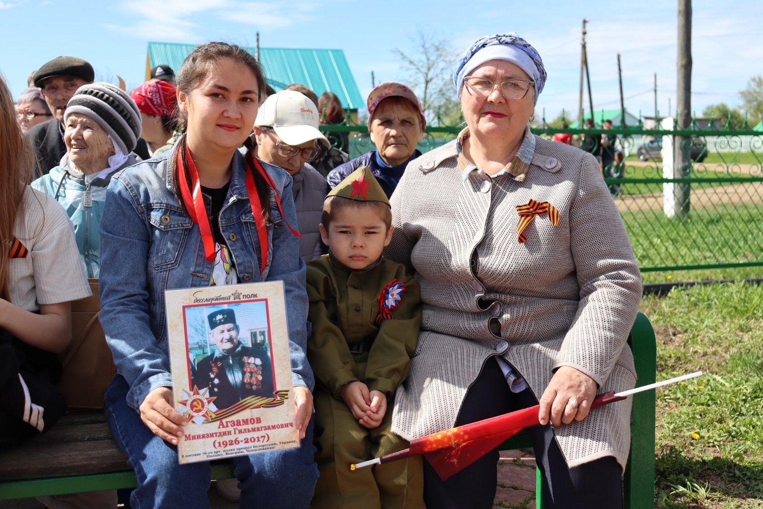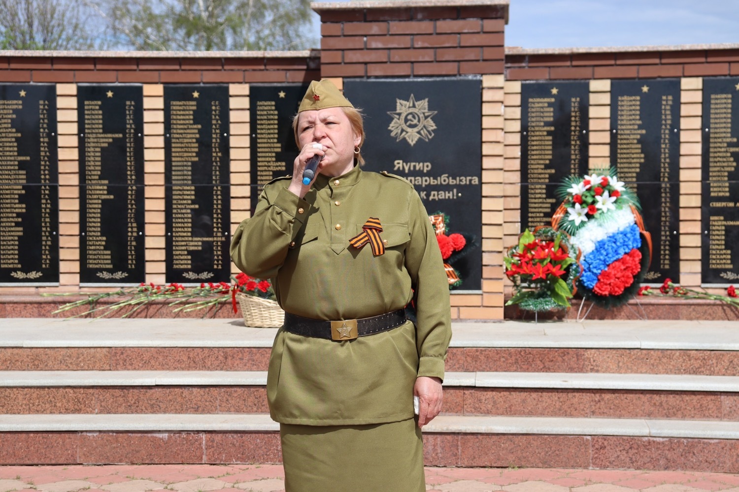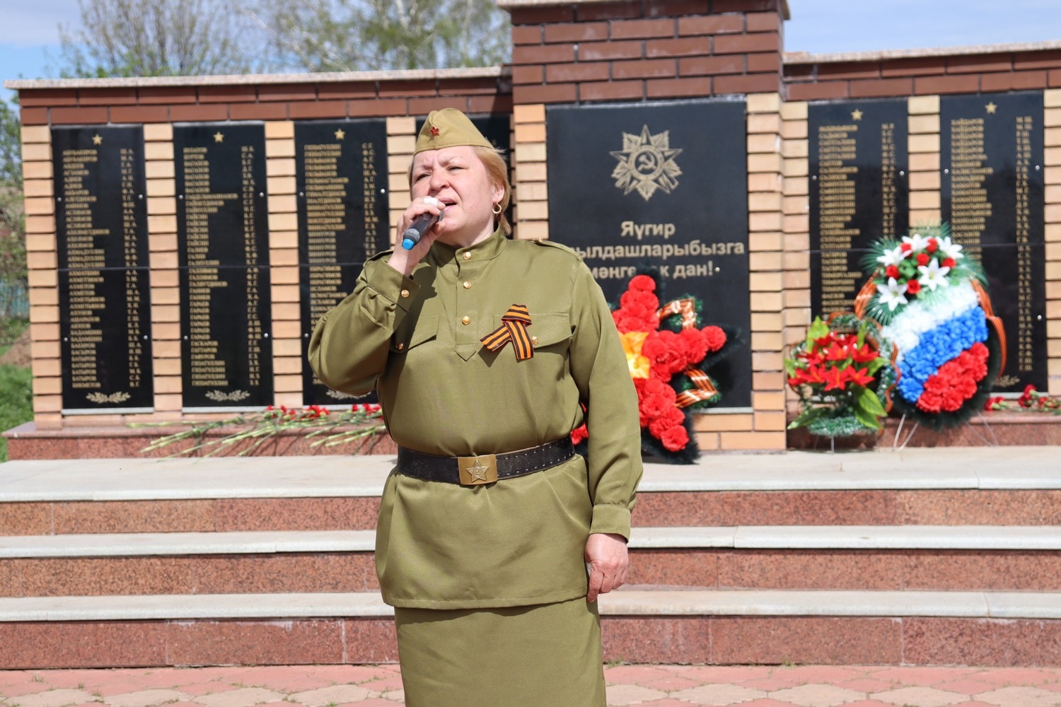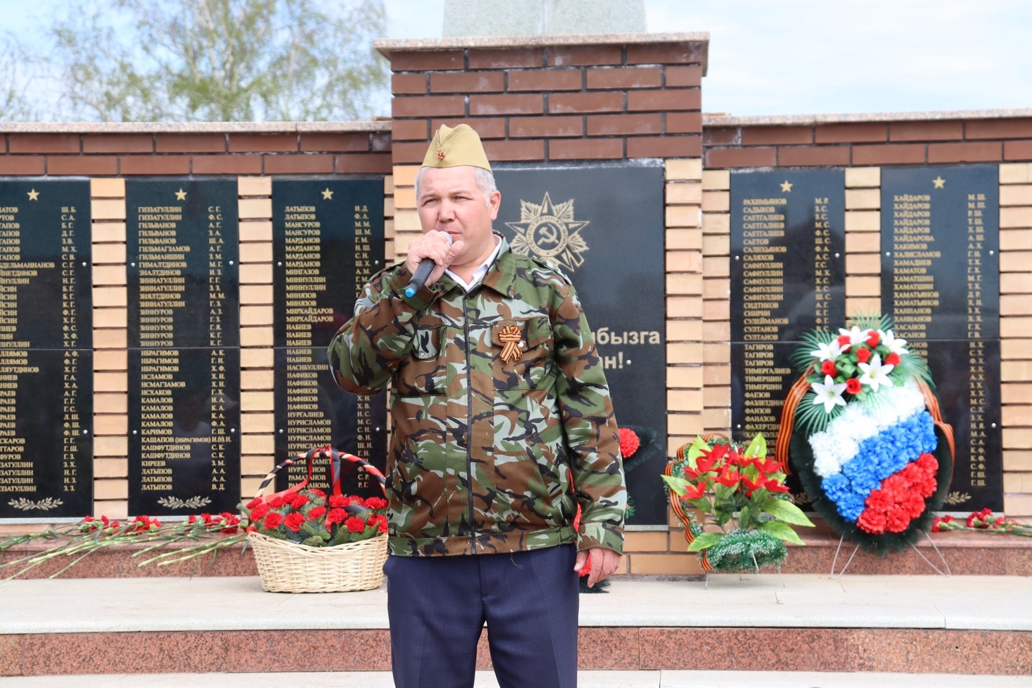 Шулай ук әлеге вакытта ил чикләрен лаеклы яклаучы егетләребез дә искә алынды. Махсус хәрби операциядә районыбыздан йөзләгән ир-егетләребез катнаша. Алар бүген безнең һәрберебезнең гомерен яклап, алгы сызыкта атлый. Якташларыбызга Җиңү белән туган җирләренә исән-сау әйләнеп кайтуларын теләп калабыз.