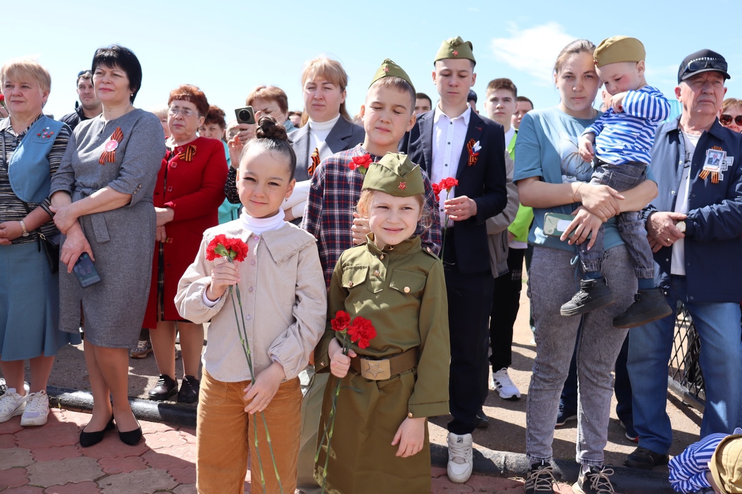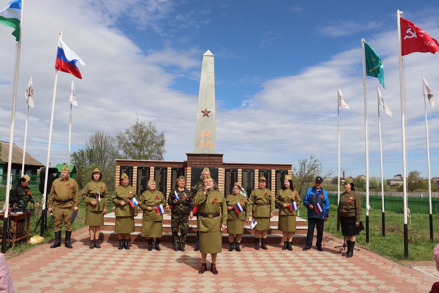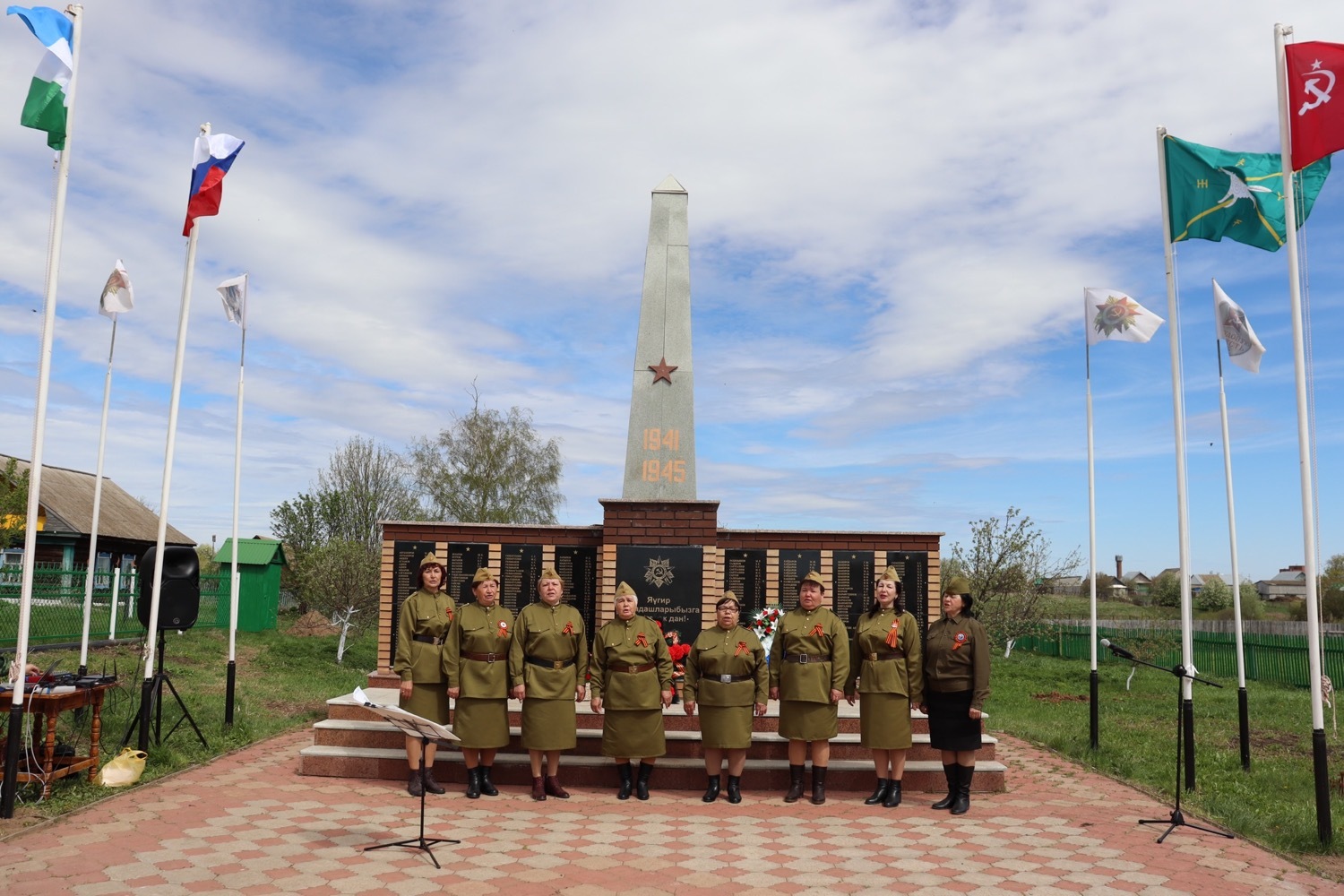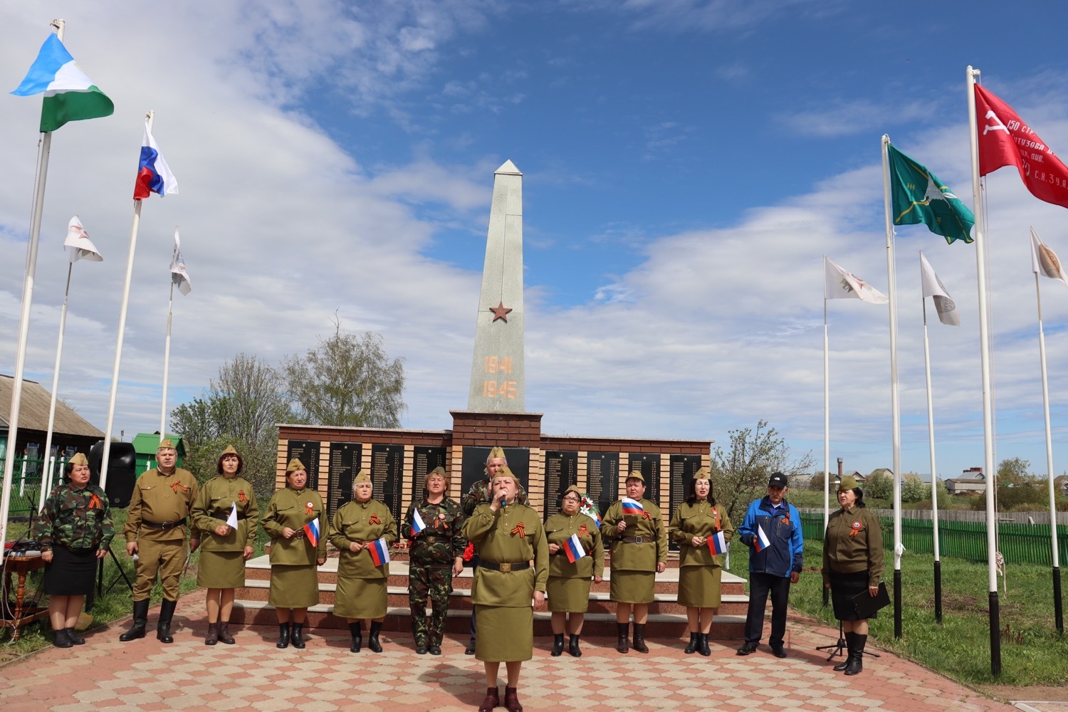 Шулай ук әлеге вакытта ил чикләрен лаеклы яклаучы егетләребез дә искә алынды. Махсус хәрби операциядә районыбыздан йөзләгән ир-егетләребез катнаша. Алар бүген безнең һәрберебезнең гомерен яклап, алгы сызыкта атлый. Якташларыбызга Җиңү белән туган җирләренә исән-сау әйләнеп кайтуларын теләп калабыз.
