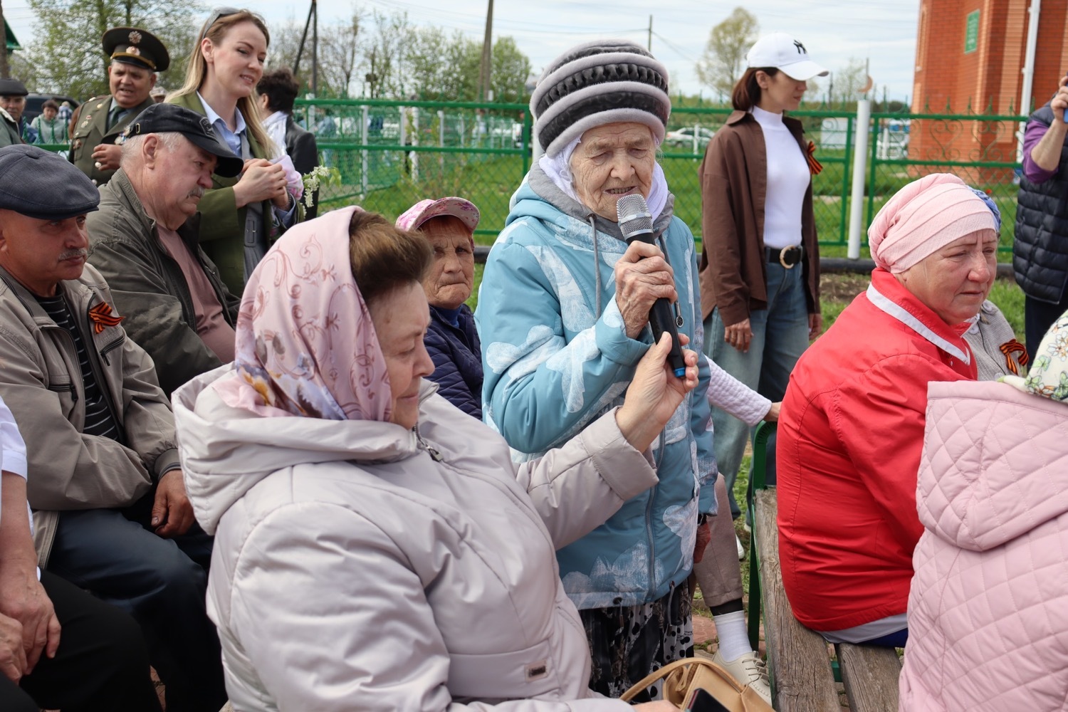 Тантананы ачып җибәрү өчен сүз Рушан Гәрәевка бирелде. Рушан Кадим улы үз чыгышында авыл халкын әлеге вакыйга һәм Җиңү көне белән котлап, бу зур эштә ярдәм иткән барлык кешегә зур рәхмәт белдерде һәм аның әһәмиятен билгеләп үтте.