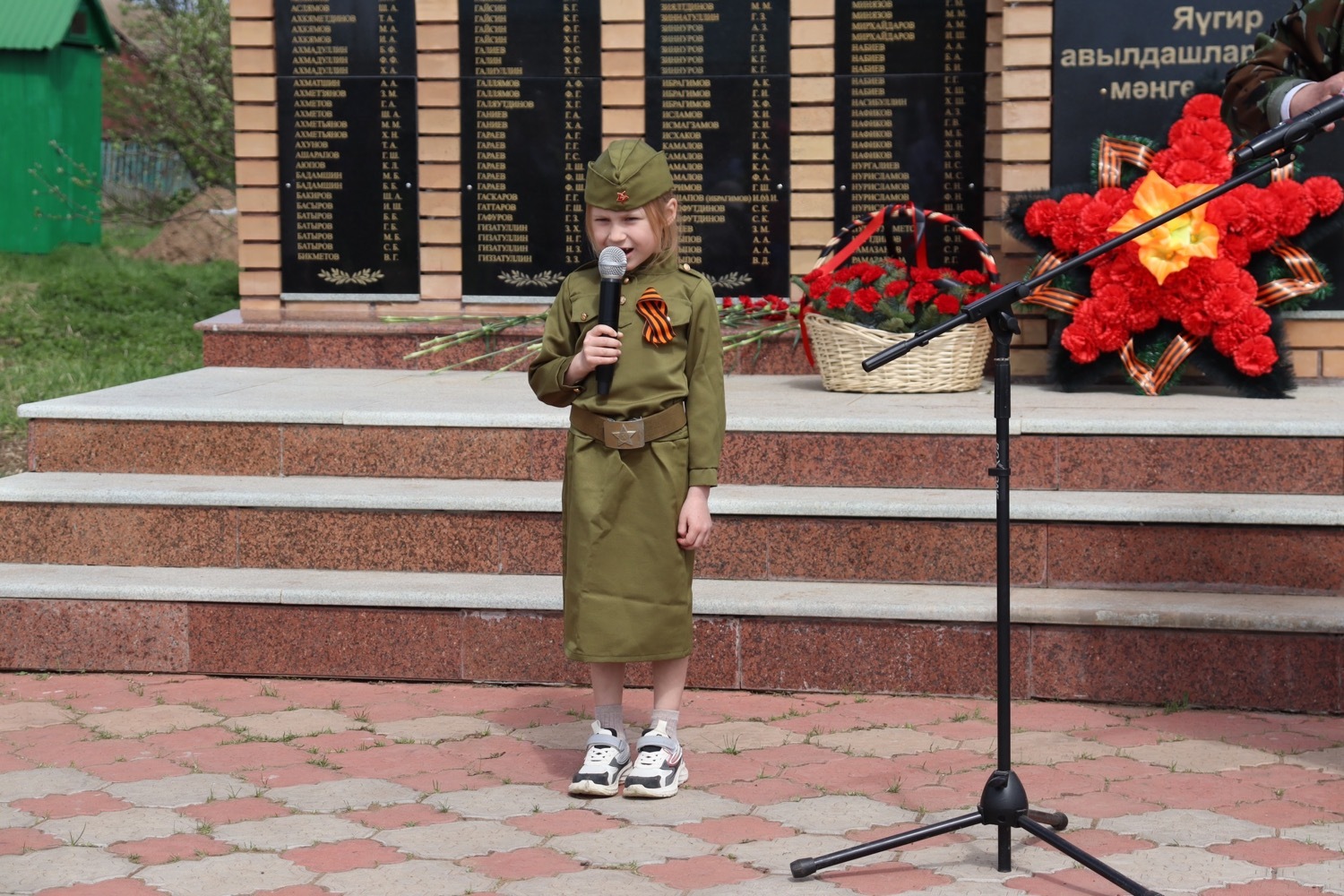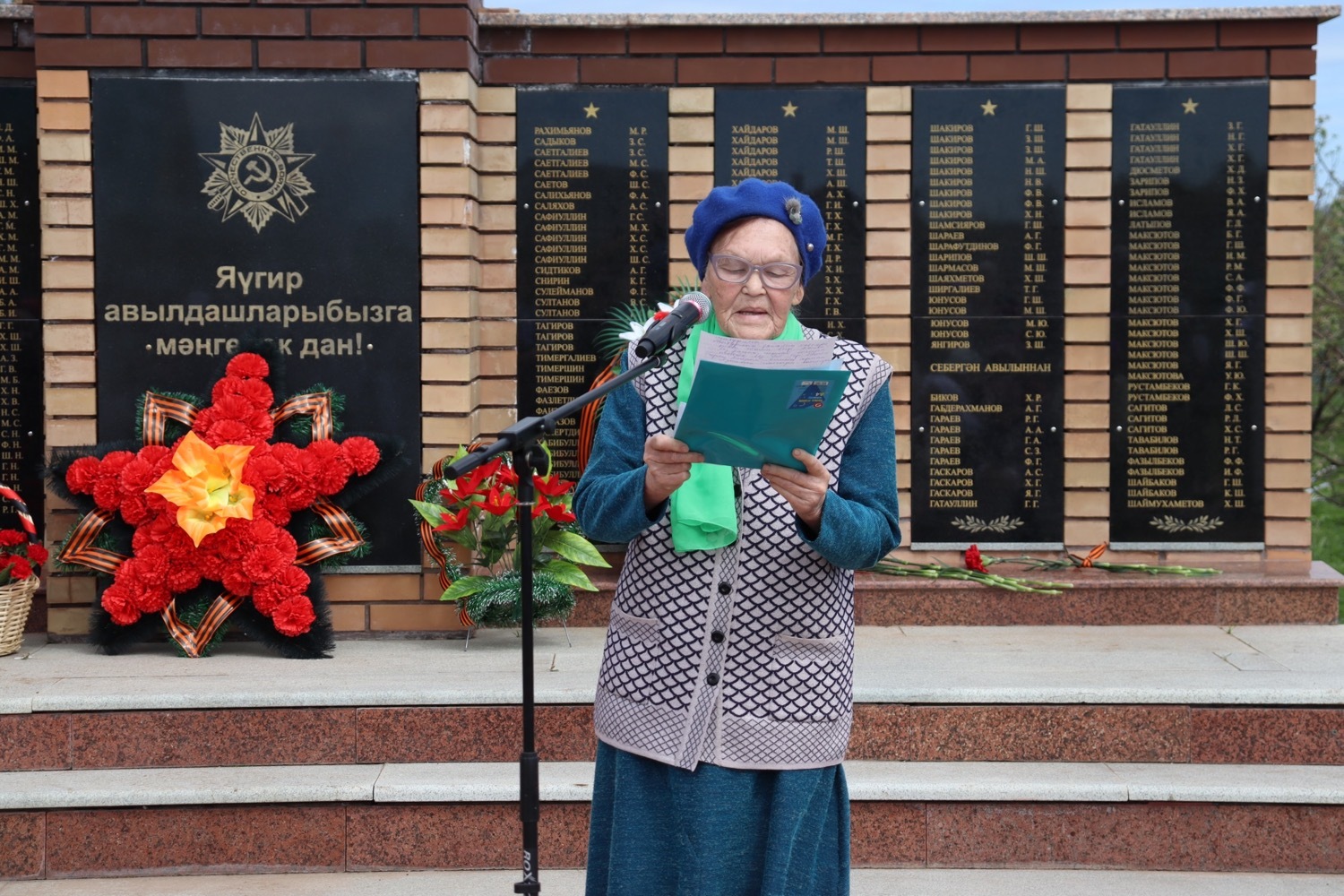 Бөек Ватан сугышында катнашучыларның тиңдәшсез батырлыгын искә алып, исәннәр алдында баш иеп, шаhит киткәннәргә дога кылып, яшь буынны Ватанны яратырга өндәп, илгә тынычлык, ямьле көннәр, матур киләчәк теләп узды әлеге тантаналы митинг.