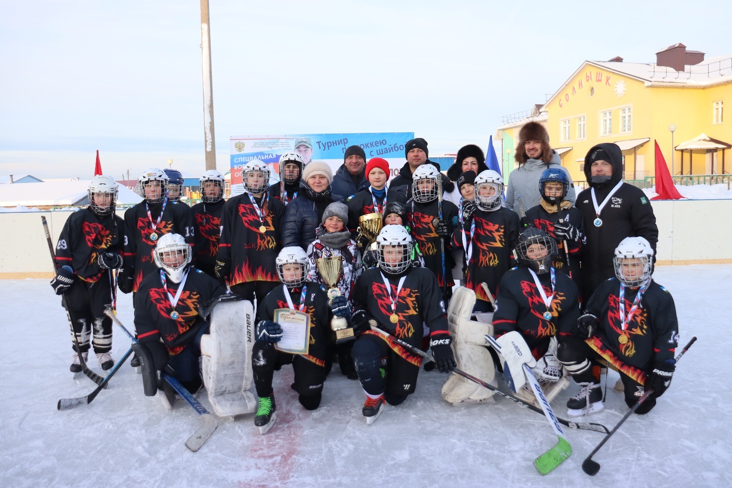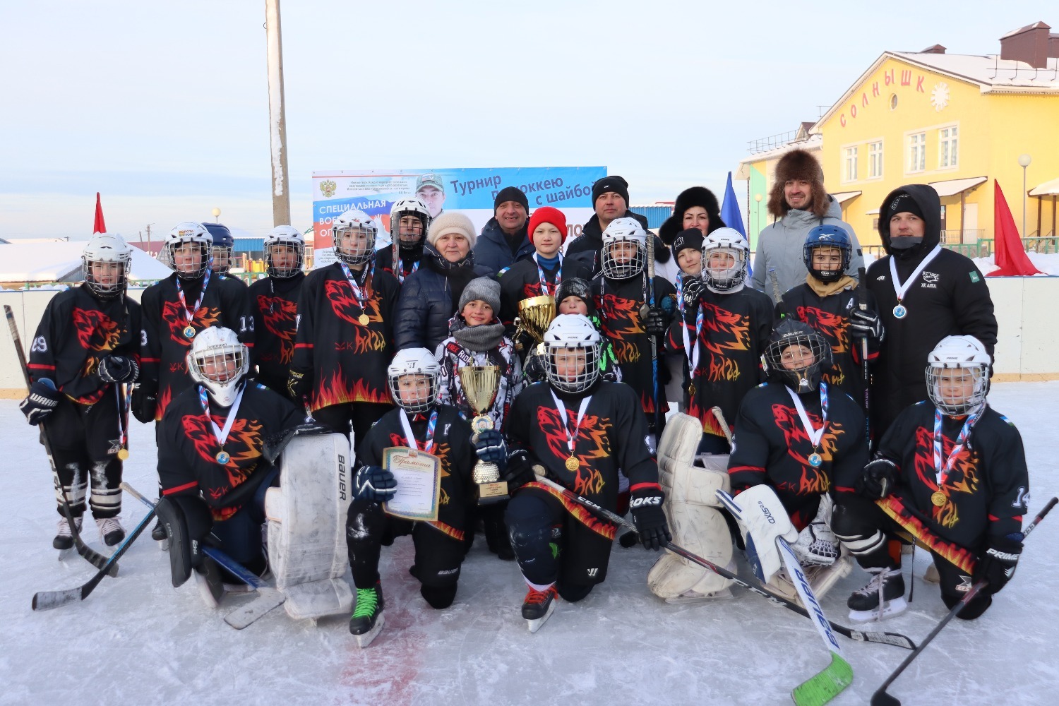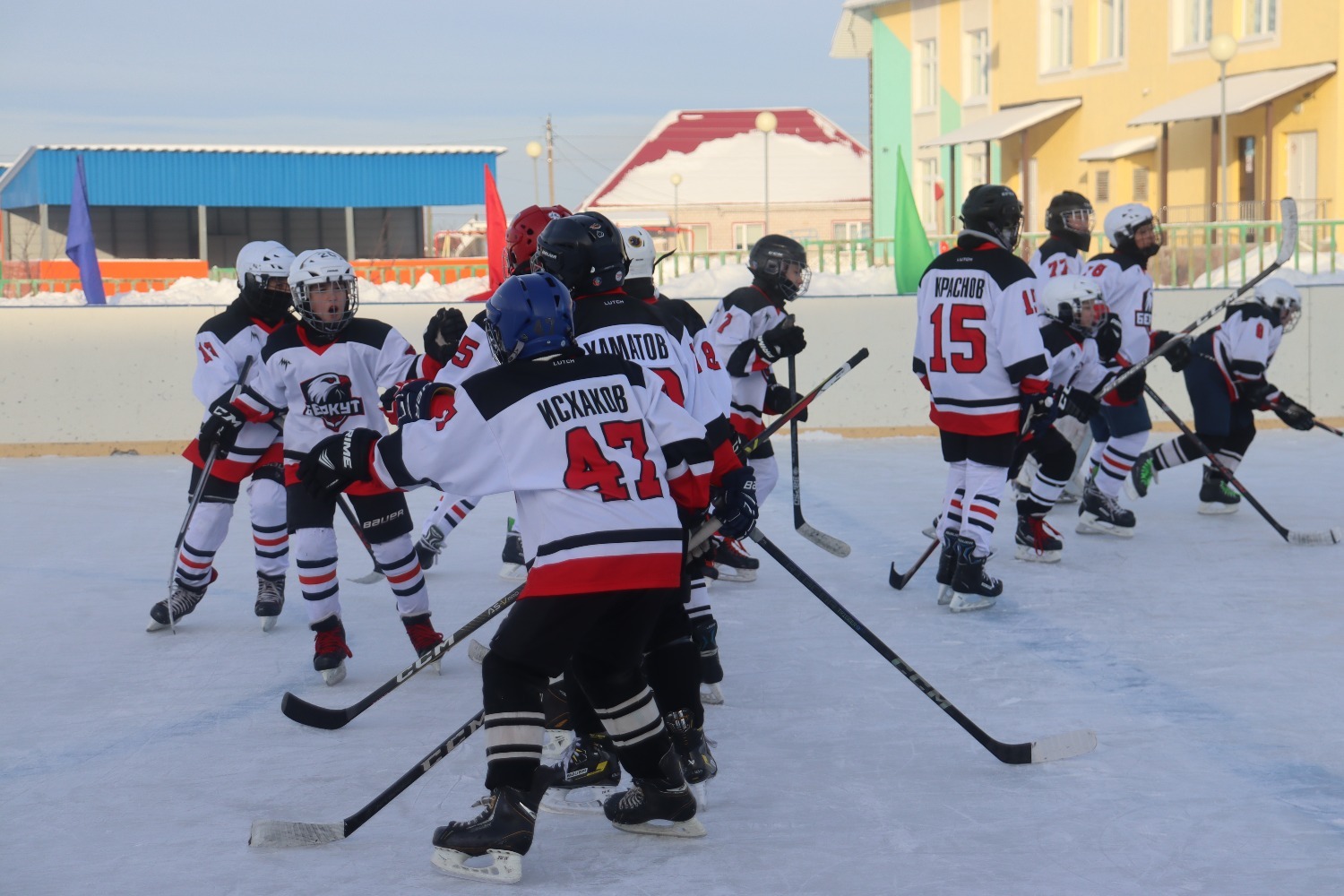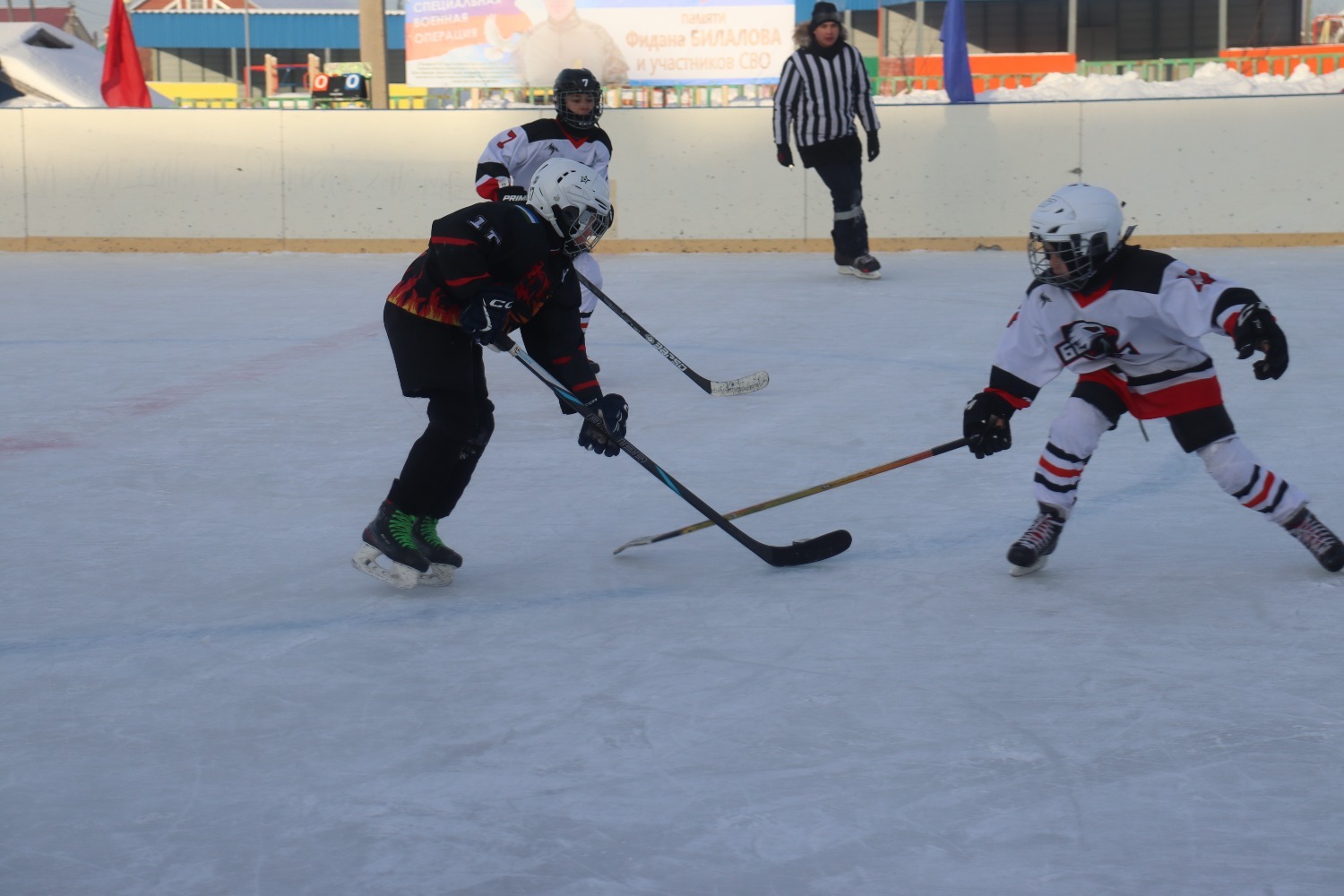 Көн суык дип тормадылар, яшь хоккейчылар чын уен күрсәттеләр. Һәрберсе җиңү өчен бар көчен салды.